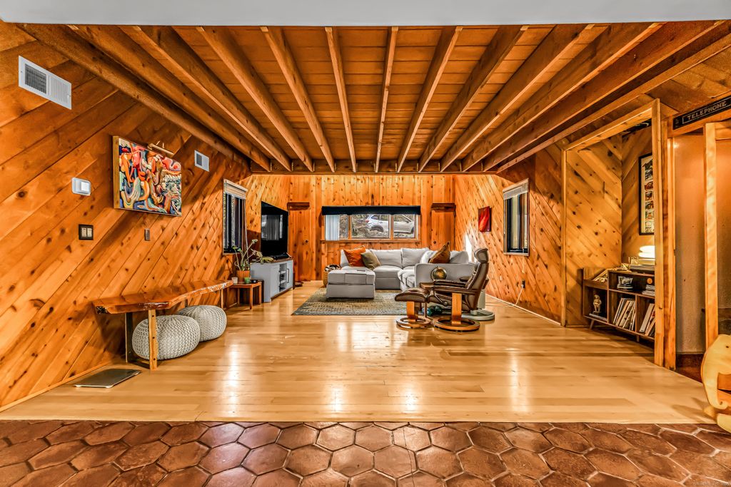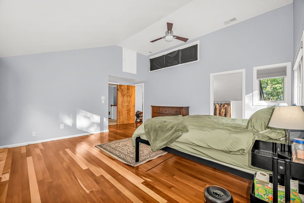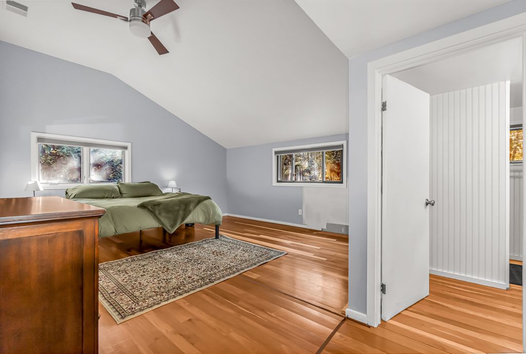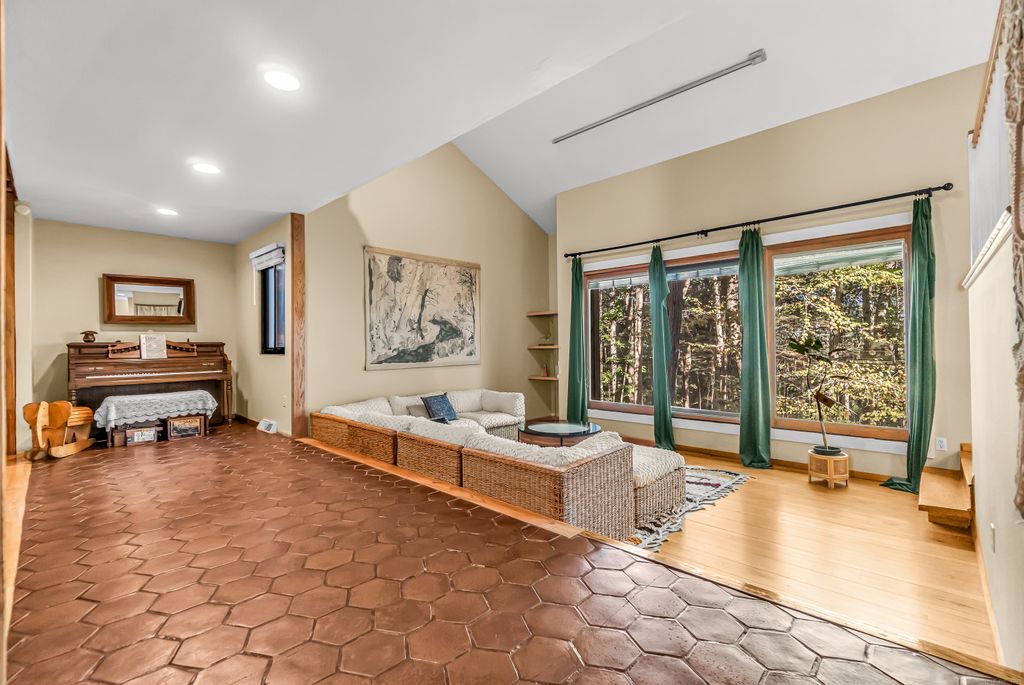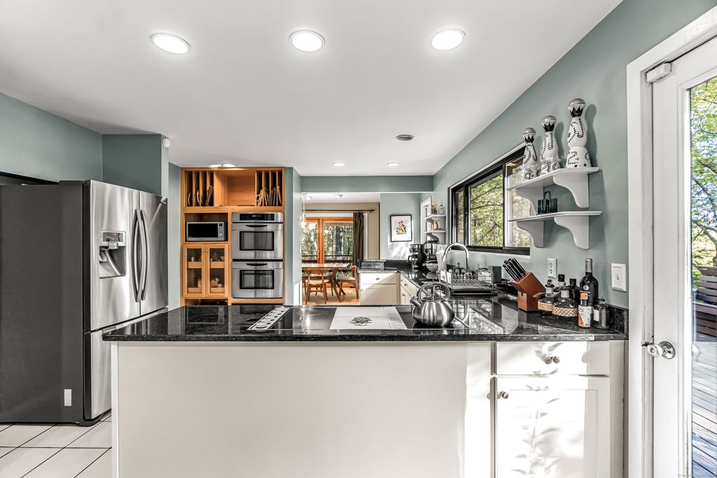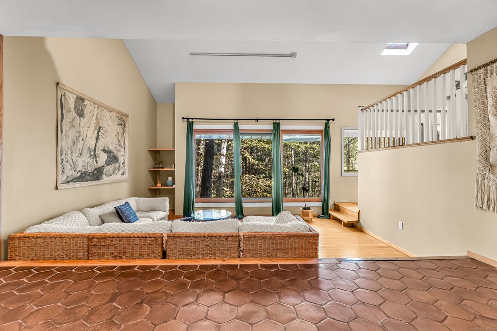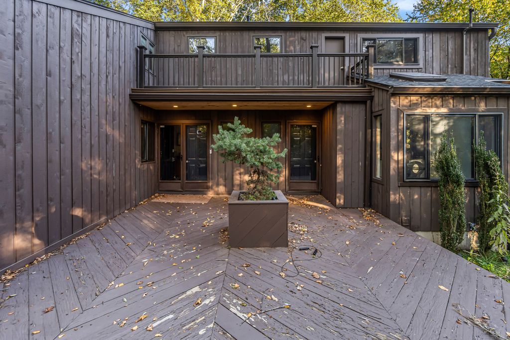 Tucked away on a peaceful cul-de-sac, this 3-bedroom, 3.5-bath Contemporary retreat blends architectural interest with warmth and function. Designed with multi-level living and dramatic sightlines, the home features a step-down living room, step-up dining area, and open staircase that brings in beautiful light and flow. Inside, you'll find vaulted ceilings, skylights, hardwood floors, and transom windows that create a bright and airy feel throughout. The spacious kitchen is ideal for the home chef - boasting granite countertops, abundant cabinetry, and high-end Jenn-Air and ASCO appliances. Upstairs, the primary suite opens to its own private deck - the perfect morning coffee spot. The finished lower level offers an additional 454 sq ft of versatile space, perfect for a recreation room, playroom, or home office, and was previously used as a spare bedroom, perfect for in laws. Outdoor living shines here, with multi-level decks featuring built-in seating and planters, a balcony deck off the dining room, and Pella sliders connecting indoor and outdoor spaces seamlessly. A detached two-car garage with loft/workshop provides room for hobbies, storage, or studio space. Set in a private, natural setting yet close to all local conveniences, 4 Old Gate Lane is more than a home - it's a peaceful lifestyle waiting for you.