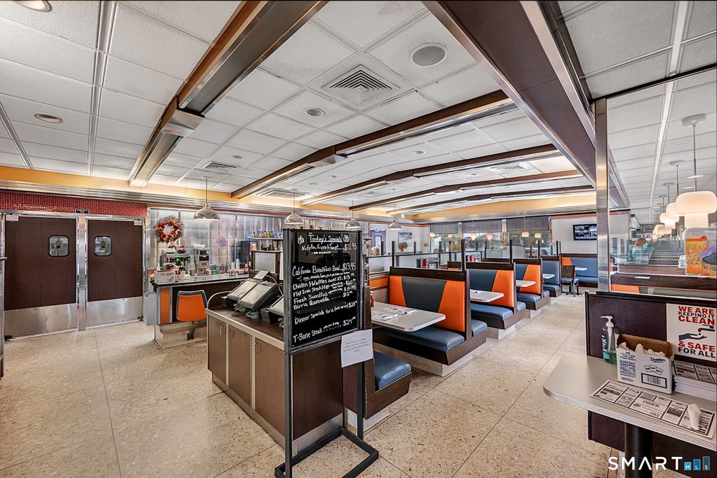 RARE opportunity to acquire a long-standing well-known restaurant property in the heart of Torrington Ct - one of Litchfield County's fastest evolving micropolitan markets. Positioned along a major commercial corridor with excellent visibility, easy access Right off of Route 8 and Route 4 and valuable on site parking. A true competitive advantage in Torrington's downtown district. The property encompasses approximately 3630 sqft and sits on a .64 acre parcel, offering substantial frontage, strong traffic exposure, room for parking, patio use and operational flexibility. The site benefits from an outdoor patio space with large canopy, expanding seating capacity and creating opportunity for seasonal dining, events or branded outdoor concepts. A standout feature is a full basement with two entry ways. The basement includes a bathroom, office, bakery room and storage areas that offers exceptional flexibility for storage, prep, or staff facilities allowing the main level to be fully optimized for guests experience and revenue-generating use. The property also features a concrete ramp for entrance and a seating room area upon entry. The structure features reinforced concrete construction, and has been seen ongoing capital improvements. The restaurant gears 3 POS systems, jukeboxes, 2 desert displays and large counter. Multiple acquisition strategies: Continue a successful operation, introduce a new food concept, or open a new franchise concept.
