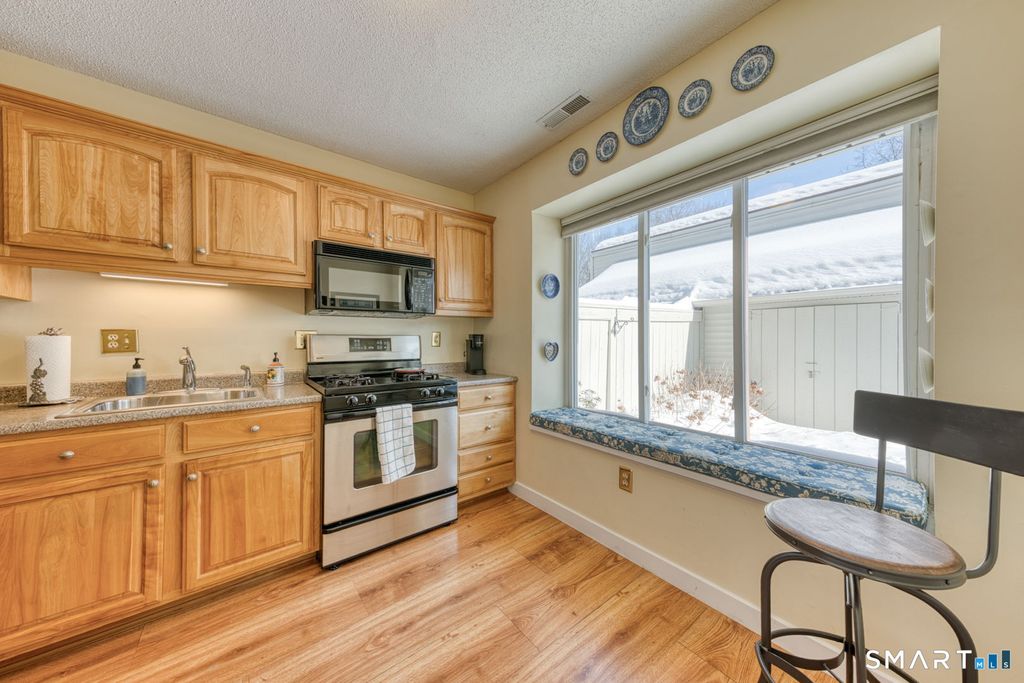 Welcome to Farmington Chase!Nestled at the end of a quiet cul-de-sac, this inviting two-bedroom townhouse offers both privacy and convenience in one of Farmington's most sought-after communities. Surrounded by mature trees, the setting provides a peaceful backdrop to enjoy from your private deck-perfect for morning coffee or evening relaxation. Inside, you'll find a spacious and well-desiged layout featuring a fireplaced living room with sliders to the deck, a bright dining area, and a well-appointed kitchen with brand new dishwasher and natural gas oven-range, a must have for those who love to cook! Upstairs, two generous bedrooms offer excellent closet space, along with the convenience of an upper-level laundry area with brand new washer and dryer. Shared full bathroom with separate sinks. The finished lower level provides flexible space ideal for a home gym, office, media room or storage. Community features summertime enjoyment with pool and tennis courts. Enjoy the best of both worlds-tranquil living just minutes from Tunxis Community College, highways, and nearby shopping and dining options. Farmington Chase offers a desirable lifestyle with well-maintained grounds and a convenient location close to everything!