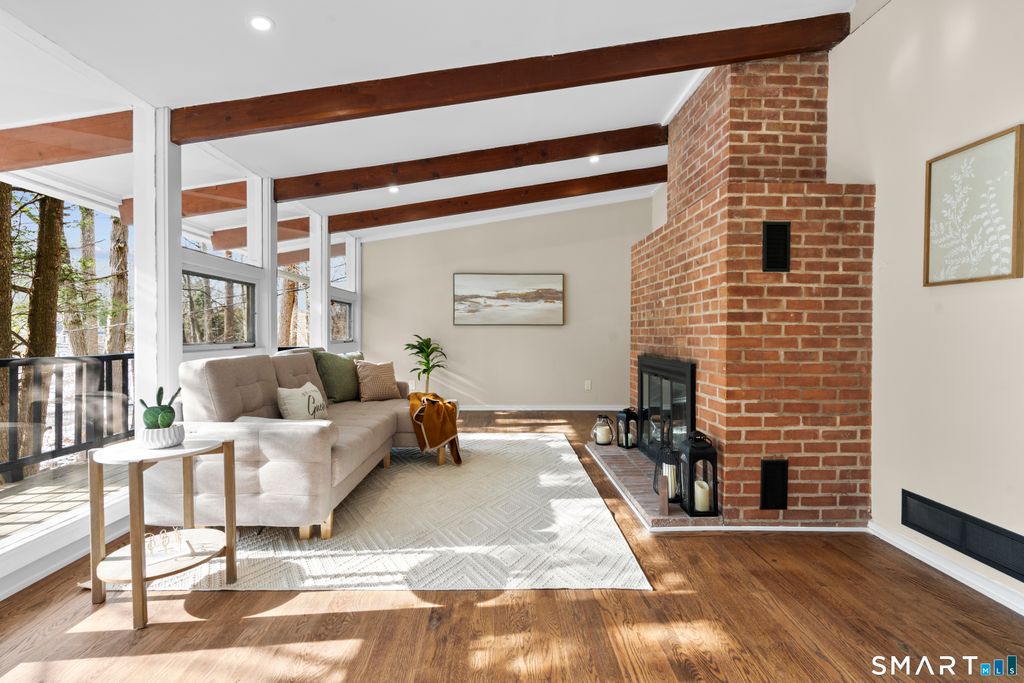 * Public Open House Sunday (1/11/26) 12pm-2pm.* Look no further for your perfect private oasis. Enter through the kitchen into a thoughtfully updated space featuring quartz countertops, tons of cabinet space, a built-in coffee bar with additional storage and prep space, brand-new stainless steel appliances, and a skylight that fills the room with natural light. The kitchen opens seamlessly into the combined living and dining area the true heart of the home where cathedral ceilings, refinished hardwood floors, a fireplace, and dramatic floor-to-ceiling windows create a space that feels both open and inviting. Just off the living room, a generously-sized deck extends the living space outdoors, perfect for entertaining or unwinding at the end of the day. The main level also features a renovated full bathroom, the serene primary suite with its own full bathroom and private patio, plus the home's second bedroom. The lower level offers a partially finished basement with a cozy recreation room and half bath, ideal for hosting guests, relaxing, or working from home. Outside, enjoy a low-maintenance 2.3 acre lot designed for ease and privacy. With abundant natural light, thoughtful updates, and a smart layout, this home offers a quiet, comforting blend of modern living and simplicity. Inquire today!