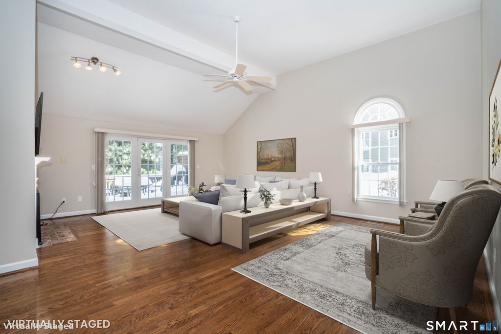 Rarely available end-unit ranch condo in the heart of South Glastonbury Center, offering the perfect balance of walkable village living and peaceful privacy. Just steps from local favorites including Olympic Pizza, Thai House, Sayulita, Cotton Hollow Kitchen, and fine dining at 2Hopewell. Enjoy your mornings at SoG Coffee, shop locally at Brookside Market, or take a scenic stroll to the Connecticut River Ferry. All just minutes from Glastonbury Center. As soon as you enter, you're welcomed by a striking antique brick floor in the foyer and kitchen, setting the tone for the home's warmth and character. The incredibly spacious great room with vaulted ceilings creates an open, airy feel and serves as the heart of the home. Sunlight fills the living and dining areas, highlighting the beautiful hardwood floors and the warmth of the gas fireplace. Slider doors lead to a private deck overlooking wooded surroundings, offering a peaceful place to relax. The home has been freshly painted, with new carpeting in the bedrooms, an updated kitchen with new appliances that opens seamlessly to the dining area, and an updated primary suite that feels like a true retreat with generous closet space. Additional conveniences include a main-floor washer and dryer, enhancing the ease of single-level living. Finished stairs lead to a walk-out lower level, providing excellent potential for future living space. An end-unit position, new generator, and exceptional condition throughout.