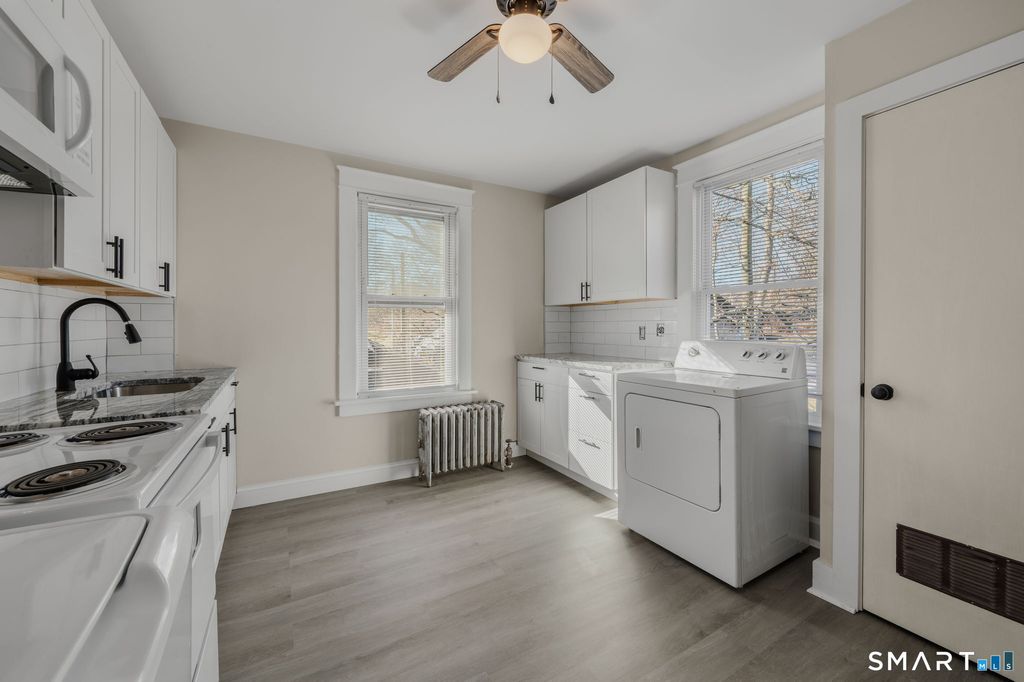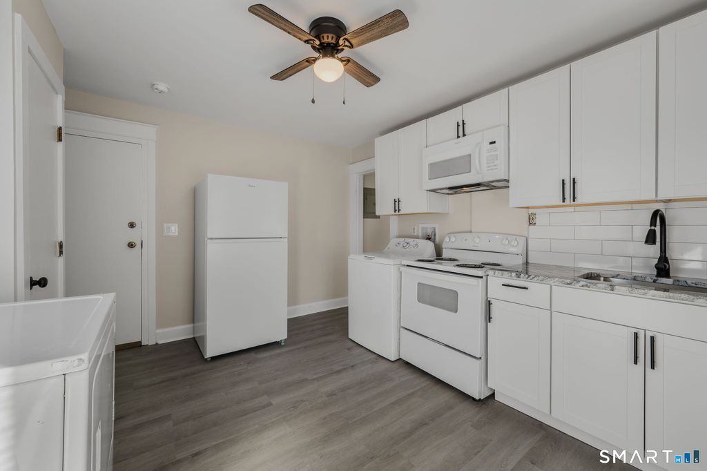 Beautifully Refinished 2nd-Floor 1BR Apartment - Bright, Redone & Close to Everything! Approximately 500 sq. ft. of freshly updated living space in this charming and convenient 2nd-floor apartment. Located on historic Pequot Avenue with water views, just a short walk from Electric Boat New London and minutes from I-95, this apartment offers easy access to all the amenities Southeastern Connecticut has to offer. Apartment Features 1 full bedroom, 1 full bath. Bathroom has been completely redone to the studs with a new shower and vanity. Efficient family room with space for relaxing or entertaining. Bright, airy feel with abundant windows and natural light. Fully repainted interior with brand-new cordless mini blinds throughout. New luxury vinyl tile plank flooring has been installed throughout. Kitchen includes: Electric range and cooktop.Microwave, Refrigerator. New Tile backsplash and under cabinet lighting. New Granite Counter Tops, cabinets, and plumbing fixtures. This apartment includes a washer and dryer within the kitchen. No need to go to the laundromat. Front porch perfect for enjoying morning coffee. Ample off-street parking. Storage space available (additional monthly fee). Included in rent: heat, hot water, cold water, sewer, trash pickup, lawn maintenance. Electric paid by tenant. Security deposit, credit check, and application fee required ($35/adult). Some pets negotiable with non-refundable pet fee. No dogs.