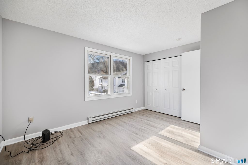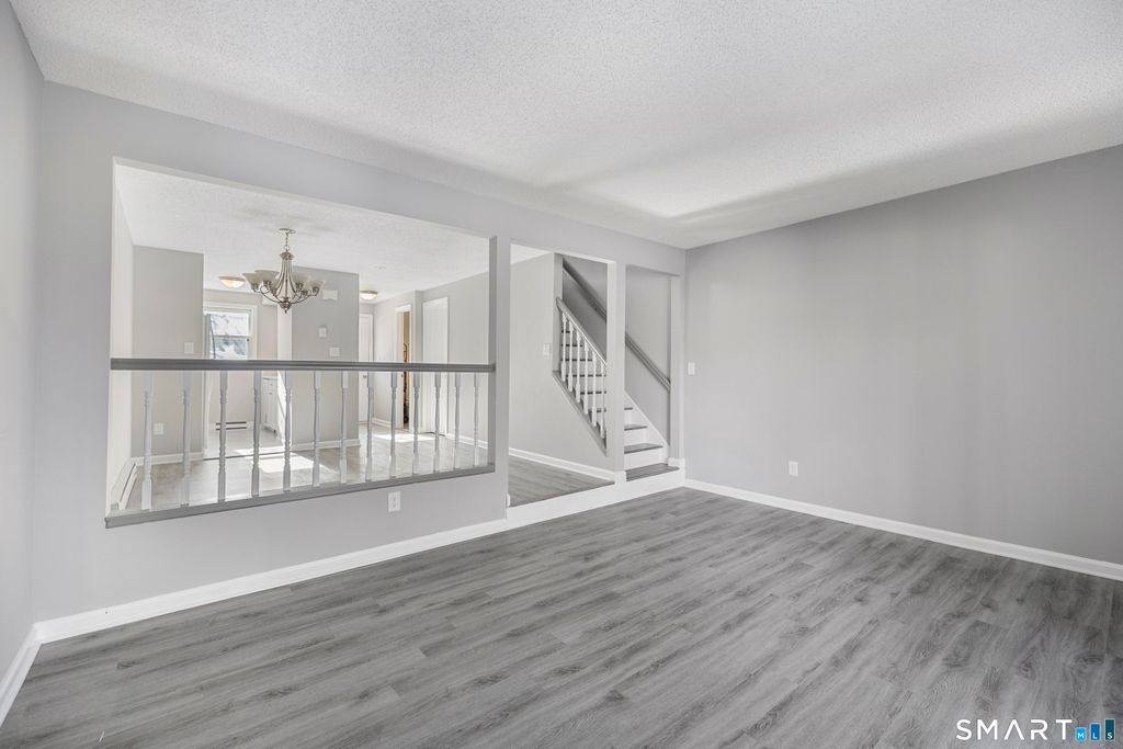 This beautifully renovated 2-bedroom, 1.5-bath condo is move-in ready and waiting for its new owner. Enjoy brand-new flooring throughout, a completely updated kitchen featuring quartz countertops, new cabinetry, and new appliances, plus freshly painted walls and molding in every room. The kitchen opens to an eat-in dining area and flows into a sunken living room with a sliding door to a private deck overlooking a peaceful, wooded setting. Upstairs, you'll find two generously sized bedrooms, a full bath, and the convenience of a brand-new washer and dryer on the same level. A full unfinished basement provides excellent storage space. Low condo fees make this an even more attractive opportunity.