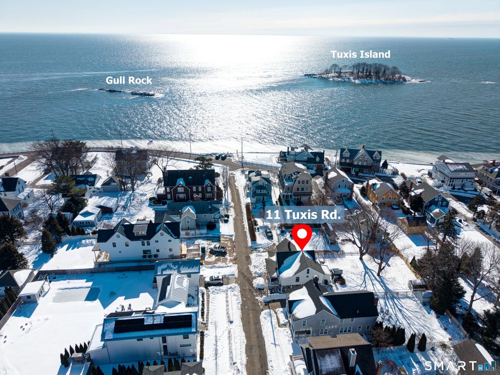 Welcome to "Brightside." Circa 1900 farmhouse offering the perfect blend of coastal charm and everyday comfort, with views of Long Island Sound and a front-row seat to Madison's annual Fourth of July fireworks! Whether enjoyed as a year-round residence, weekend escape, or vacation getaway, this quintessential seaside cottage delivers a true shoreline lifestyle. Spend your mornings on the wrap-around porch, afternoons at the beach, and evenings entertaining at home. Inside, original character is beautifully preserved with bead-board walls and ceilings and wood flooring throughout, while modern conveniences include central A/C, natural gas heat, and public water. The dining room features a built-in curio, and the living room offers an efficient gas fireplace designed to heat up to 1,200 SF. The updated eat-in kitchen includes a walk-in pantry, cherry cabinetry, granite countertops, stainless steel appliances, including a 5-burner gas cooktop. The second floor offers four bedrooms plus an office, with one bedroom currently serving as a laundry/guest room. Outdoors, the fenced, level yard is ideal for summer fun and entertaining, complete with a stone patio and hot tub. Ideally located just off Middle Beach Road, moments to town beaches, downtown Madison, The Madison Beach Hotel, Town Green, and cinema. An excellent investment opportunity and a place where every day feels like vacation.
