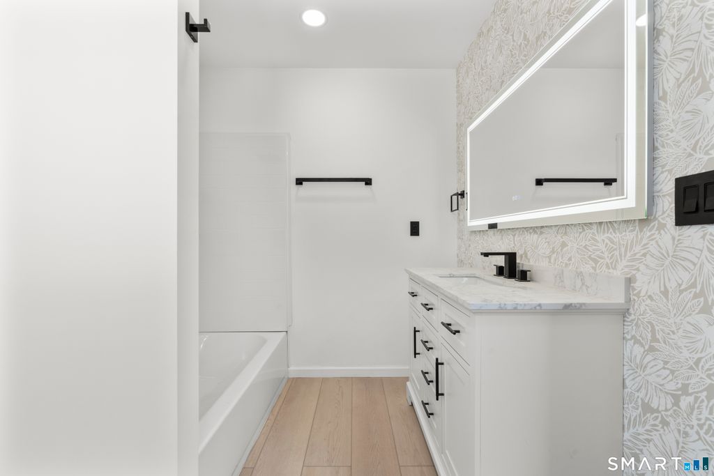 Welcome to this beautifully renovated home in East Haven, offering 1,380 square feet of thoughtfully updated living space with a bright, modern aesthetic throughout. Step inside to a stunning new kitchen featuring crisp white cabinetry, sleek countertops, and stainless steel appliances, perfectly complemented by warm wood-tone flooring and designer lighting. The open layout creates an inviting space ideal for both everyday living and entertaining. The home continues to impress with fully updated bathrooms, showcasing contemporary finishes, elegant vanities. Every update was done with both style and functionality in mind. Major upgrades provide peace of mind, including brand-new siding and a brand-new roof.The property is serviced by natural gas, public sewer, and a private well, offering a practical and efficient utility setup. Outside, the freshly updated exterior delivers excellent curb appeal, making this home as attractive on the outside as it is inside. Move-in ready and ideally located in East Haven, this home is a perfect blend of modern upgrades and everyday comfort.A must-see property.