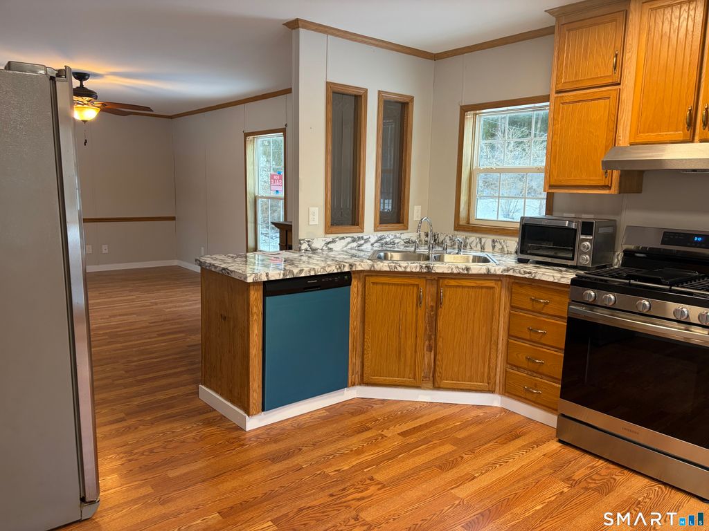 Built in 2011 - Like New! 14' x 70' mobile home on a quiet street in Candle Hill Park, New Milford. Features gas heat, hookups for gas heater, bright kitchen with bay window, open floor plan, and a 30-ft deck overlooking a private yard. Includes shed for storage. Peaceful setting with open field and babbling brook nearby. Convenient to Sherman, Kent, Litchfield, NY train, Candlewood Lake, New Milford Green, and I-84. Pets allowed (dogs under 50 lbs). All sales subject to park approval.