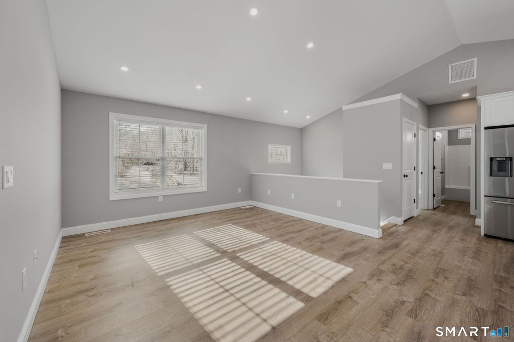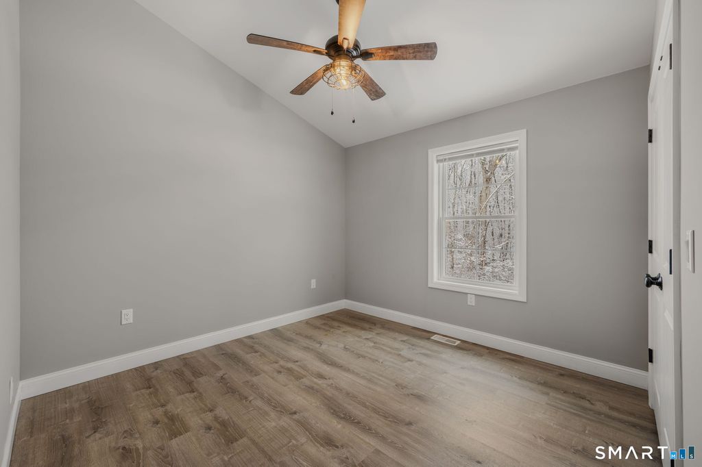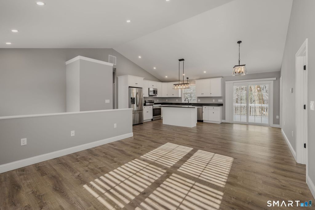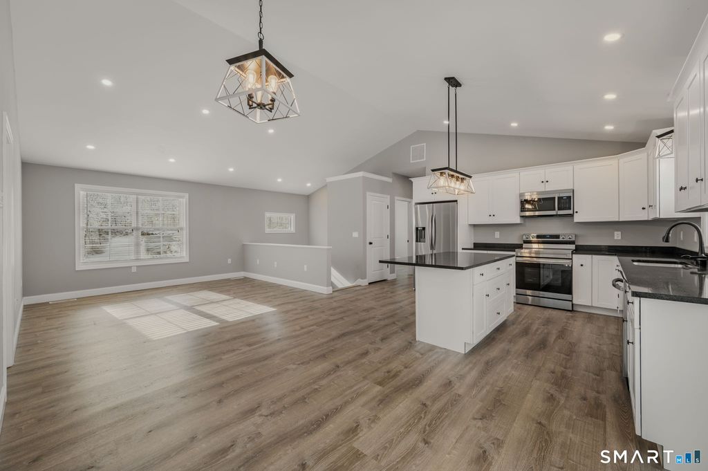 Built in 2022, this beautifully maintained raised ranch sits on a private 5.33-acre parcel in scenic Voluntown, Connecticut. Designed with today's buyer in mind, the home offers an open-concept floor plan accented by vaulted ceilings and abundant natural light. The main level features a spacious primary suite with a large walk-in closet and a private ensuite bath complete with a walk-in shower. Two additional bedrooms and a full three-piece bath are also located on the main floor, along with the convenience of main-level laundry. The finished lower level expands the living space with an additional bedroom, a generous family room, a full bath with a walk-in shower, ample closet storage, and direct access to the oversized two-car garage. Modern curb appeal is highlighted by crisp white siding and striking black-trim windows, while the expansive acreage offers privacy, versatility, and room to enjoy the outdoors. A rare opportunity to own a newer-construction home with space, style, and functionality in a peaceful rural setting.