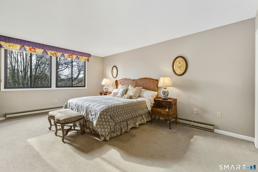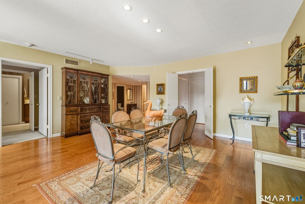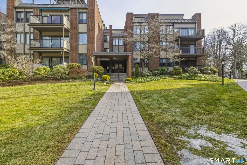 Welcome to this beautifully sunlit south facing corner unit, one of the largest and most desirable 3 bedroom floor plans in the complex. Fully renovated and ready for you to move in. Located on the third floor, unit C5 offers southeast views from a private balcony, with plenty of open sky to admire the sunrise. Should you desire shade the balcony awning is easy to operate. The kitchen and two full/one half baths have upgraded cabinetry and granite counters. The primary bath offers double sinks and low entry stall shower. Expansive closets are conveniently located throughout this home, along with a walk-in pantry and separate in-unit laundry. The third bedroom is currently set up as a den off the living room, but has a sliding pocket door that can close the room for privacy as desired. It is also plumbed for a wet bar, on the left side of the entertainment unit, should you wish to install one. One assigned parking space (#11) is located in the garage, along with a 10x19 private & secure storage closet (#A). The grounds are beautifully manicured and the HOA includes use of the private pool. The rear gate to Elizabeth Park provides easy access to historic gardens, walking paths, tennis courts, duck pond, restaurant and summer entertainment. Plenty of surface guest parking available. Grosvenor House offers luxury quality of construction with convenient access to all the highlights of West Hartford living. Book your private tour today.