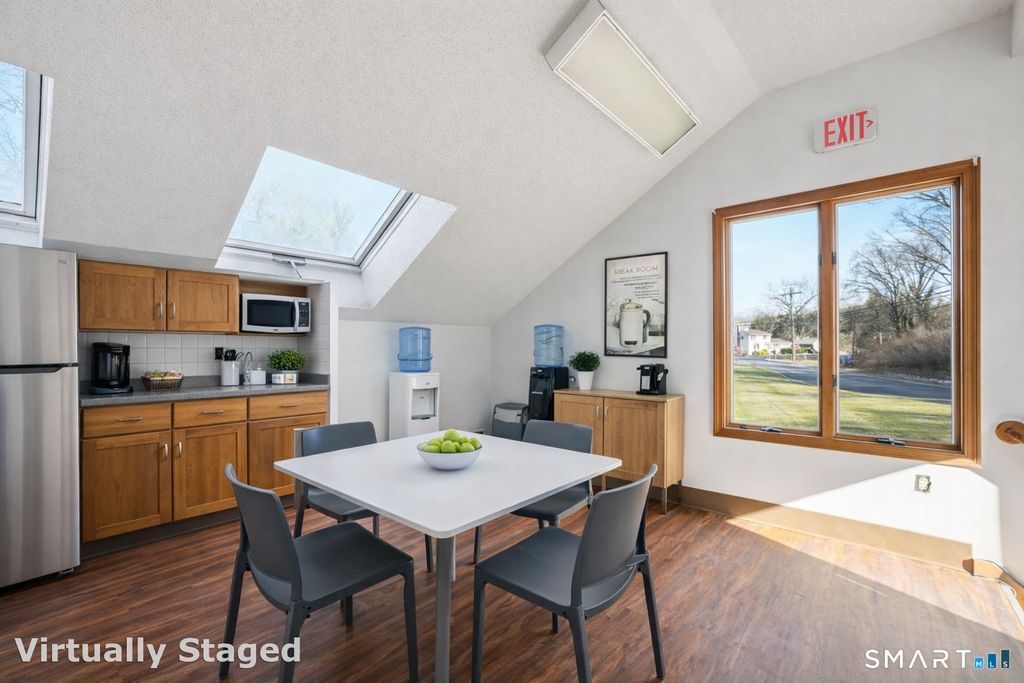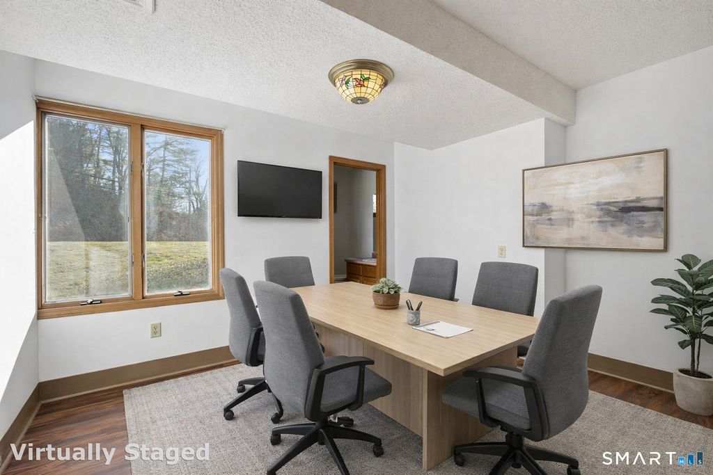 Opportunity to own a professional office condominium in well-established Westview Office Park in South Windsor office condo building. Not your typical office park setting! Lovely setting within the office park with welcoming private entry at the end of the building.Previously used as a dental office, the space offers a functional layout with reception area, multiple offices or treatment room, staff room, built-in cabinetry, and excellent natural light. Ideal for medical, dental, therapy, or professional office use, subject to condominium regulations and approvals. Convenient location with easy access and on-site parking. A strong option for owner-users seeking a professional setting without the responsibilities of standalone building ownership. The monthly condominium fee includes exterior maintenance, common areas, snow removal, landscaping, and professional building management-providing ease of ownership and predictable costs. Suite A1 is the second largest unit in the building. Welcome your clients, patients, office staff and so many others to this special place to own a business!