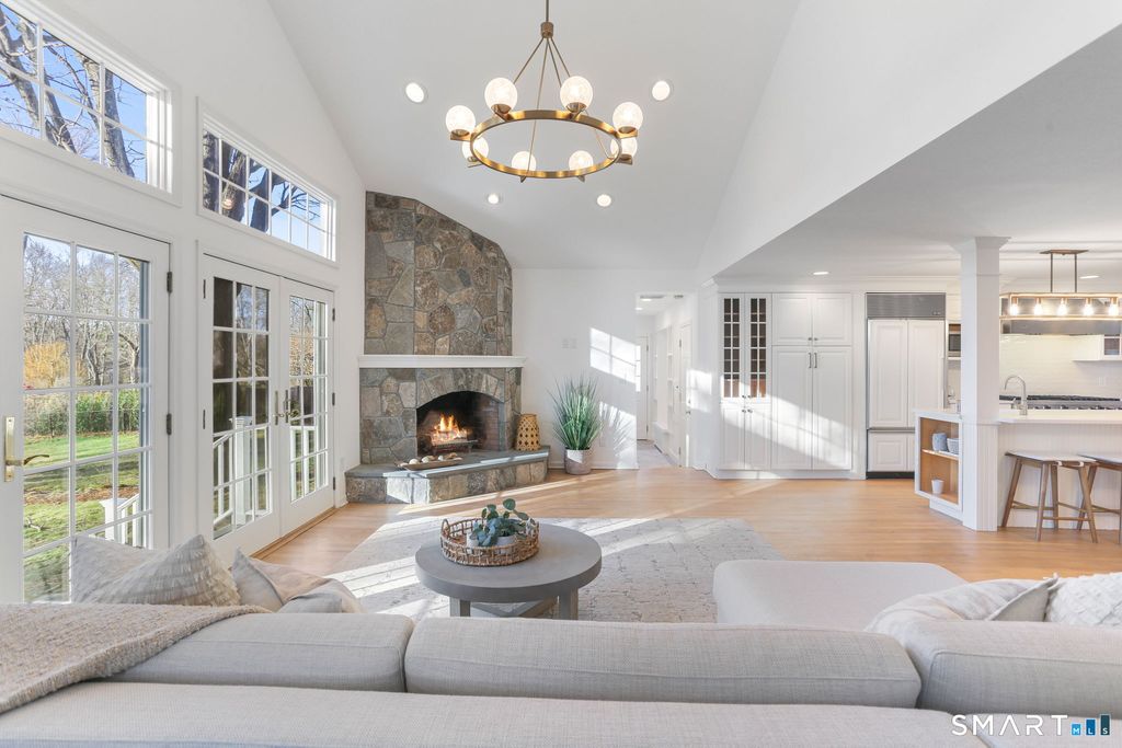 Renovated, refreshed, and move-in ready, this sunfilled Greens Farms gem offers the perfect blend of charm, style, and modern comfort. Set on a beautifully landscaped, level acre with gunite pool and expansive patio, the outdoor living experience is exceptional. Fresh paint inside and out, a new pergola, and thoughtful landscaping create irresistible curb appeal. Step inside and feel instantly at home. The inviting Dining Room and elegant Living Room with fireplace flow seamlessly toward a private office. The updated eat-in kitchen features gleaming new countertops and opens directly to the dramatic Great Room, where soaring ceilings and French doors frame views of the tiered patio, lush grounds, and pool. Upstairs, you'll find four bright bedrooms and two full baths. The spacious Primary Suite is a true retreat, complete with a sitting room, two walk-in closets, a well appointed bath, and striking vaulted ceilings. The heated lower level offers flexible bonus space, ideal for a playroom, gym, or creative studio. Two car garage with new mudroom. A home that feels as good as it looks. You're going to love it.