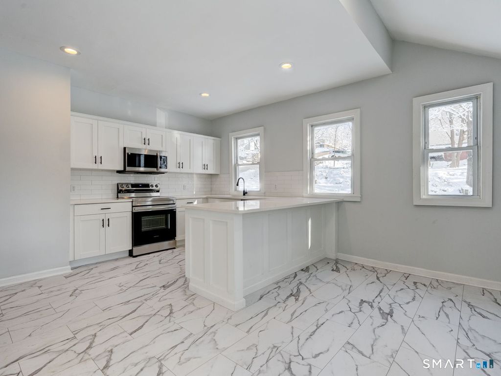 Welcome to this fully remodeled 3-bedroom, 2-full-bath home located on a quiet street in Waterbury. This move-in-ready property features a brand-new kitchen with sleek quartz countertops, modern cabinetry, and updated finishes-perfect for both everyday living and entertaining. The home offers a thoughtfully updated interior with fresh flooring, updated bathrooms, and a clean, contemporary feel throughout. New siding enhances both curb appeal and long-term durability. Each bedroom is well-sized, and both full bathrooms have been tastefully renovated with modern fixtures. Conveniently located near shopping, dining, schools, and major highways, this turnkey home is an excellent opportunity for homeowners or investors alike. Nothing to do but move in!