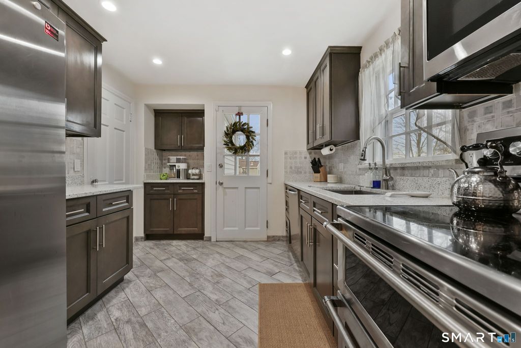 Welcome to 154 Knox Road-an updated and inviting Colonial set on .27 acres in Stamford's Springdale neighborhood. Offering 3/4 bedrooms, 2 full baths, and 1,278 sq ft, this home blends comfort, updates, and a highly convenient location. The renovated kitchen features quartz countertops, stainless-steel appliances, and direct access to a private oversized deck overlooking the landscaped backyard. The kitchen opens to the dining and living area, creating a practical and comfortable flow for everyday living and hosting. The main level also includes a bedroom and full bath with laundry. Upstairs, two additional bedrooms with hardwood floors are complemented by a flexible bonus room that can support a variety of uses, along with a renovated full bath. The additional 480+ sq ft lower level provides excellent storage/recreation potential, and the attached 1-car garage adds convenience. City water and sewer. Situated on a quiet and well-established street, the property offers close proximity to Springdale's shops, restaurants, library, parks, and train station, making day-to-day living exceptionally accessible. The home's thoughtful layout, outdoor space, and location combine to create a wonderful opportunity in one of Stamford's most established neighborhoods. With a balanced blend of updates and charm, this home is ready for its next chapter.