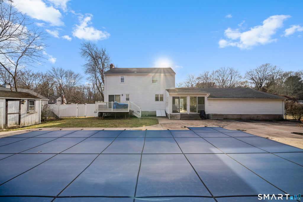 Fantastic Colonial located in a sought-after neighborhood, offering a large attached two-car garage. The spacious and sunny family room features sliders in front back for easy access to the backyard. The yard is complete with a patio and in ground pool! THINK SUMMER! The liner and pump were replaced in '22. This home offers an eat-in kitchen plus a formal dining room, perfect for entertaining. The living room showcases a fireplace and hardwood floors, with a separate office area and half bath just off the living room, along with sliders leading to a deck overlooking the backyard. Upstairs you'll find three generously sized bedrooms and a full bath, with hardwood flooring beneath the carpeting. The partially finished lower level includes a laundry area, half bath, and convenient hatchway access to the backyard. Half acre lot. A wonderful setting ready to be made your home. Estate. Subject to probate approval just waiting on the contract.