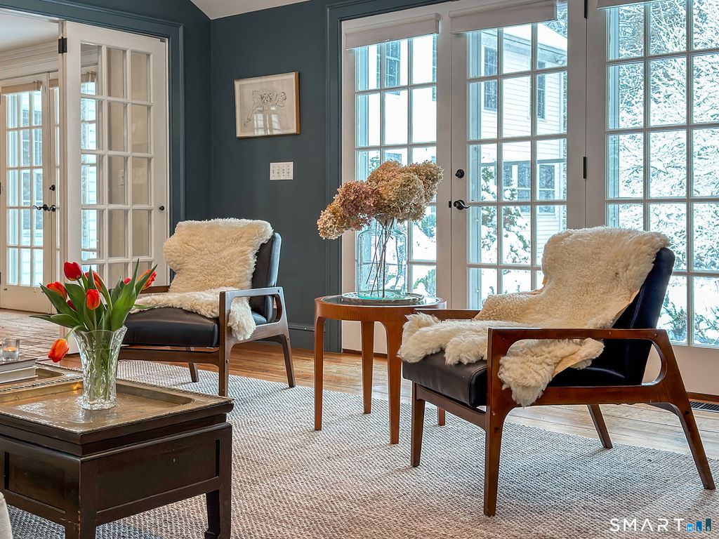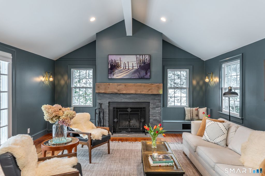 Meet Mae. An anchor to darling Cornwall Village. This 1780 Colonial has endured the test of time and was lovingly added onto with thoughtful renovations for modern living. Original details remain: 6 over 6 windows, eyebrow windows, and clapboard siding. Enter this classic beauty into a foyer flooded with light by the adjacent french doors. The elegant sitting room invites you in to sit by the fireplace. In the summer pop out through the dutch door to the garden to cut fresh flowers. The kitchen just beyond offers a functional layout as well as an eat in space. An additional dining space just beyond the kitchen allows for ease and function. The living room has soaring ceilings, a wood burning fireplace, and ample space for friends and family to gather. The first floor hosts two ensuite bedrooms. The first, more modest, with a full attached bathroom with tub and shower. The primary suite is its own private retreat. Graciously high ceilings, a woodburning stove, ample windows allow light to flood into the space. A generously sized walk in closet and full bathroom create a serene space to get away. Just above the suite is a loft that could be used as a reading space, or tucked away office. The second floor offers a large flex space that can be used as a game room, or additional living room. Two additional bedrooms and common full bathroom complete the second story. Pop out the french doors to the bluestone patio which flanks the back of the house.