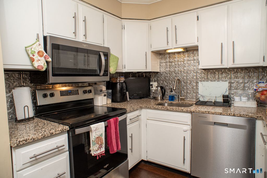 Welcome to your dream condo! This beautifully remodeled 2-bedroom, 1-bathroom home is a perfect blend of modern convenience and classic charm. Nestled in a highly sought-after neighborhood in Bridgeport, CT, this property offers a wonderful place to call home! This charming apartment style condo has been meticulously maintained, with attention to detail evident throughout. The perfect blend of modern amenities and classic design. Making your way into the home you are greeted by an option to go into the oversized living room or the kitchen. The main level of the home features an open-concept layout seamlessly connecting the kitchen, dining area, and living room, creating a warm and inviting space for gatherings/entertaining. Both bedrooms are generously sized with views of the woodland around the complex. The condo has in-unit washer and dryer that provides additional convenience. Centrally located to RT34, RT8, Merritt Pky, and I-95, makes this perfect for the weekend or daily traveler.