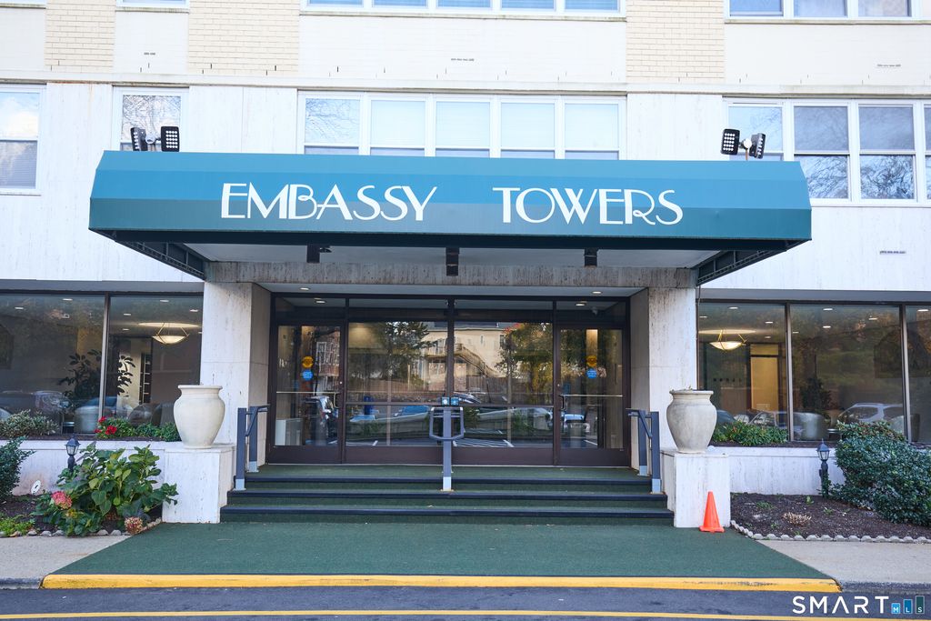 MAKE YOUR OFFER AND MOVE RIGHT INTO YOUR SPACIOUS AND AFFORDABLE EMBASSY TOWERS UNIT AND ENJOY THE LUXURY LIFESTYLE YOU WILL FIND INCLUDING 24 HOUR/7 DAY SECURITY, RENOVATED HEALTH/EXERCISE ROOM, LIBRARY, TENNIS COURTS, OLYMPIC SIZED HEATED POOL, RESERVED GARAGE PARKING, GUEST PARKING, STORAGE, DOG PARK, MANICURED GROUNDS AND THE GREEN ROOM TO ENTERTAIN FRIENDS AND FAMILY. COME HOME, UNWIND WITH YOUR VIEWS OF LONG ISLAND SOUND ALONG WITH YOUR RENOVATED CHEF'S KITCHEN PLUS STAINLESS STEEL APPLIANCES, REMODELED BATH, HARDWOOD FLOORING, WALK IN CLOSET AND EXTRA CLOSETS ALL WITH AN IDEAL, CONVENIENT LOCATION MINUTES TO RESTAURANTS/DINING, RETAIL/SHOPPING, GOLF COURSES, METRO NORTH TRAIN STATIONS WITH EASY ACCESS TO I-95, RT 25/8 AND RT 15 MERRITT PARKWAY. IMMEDIATE OCCUPANCY!