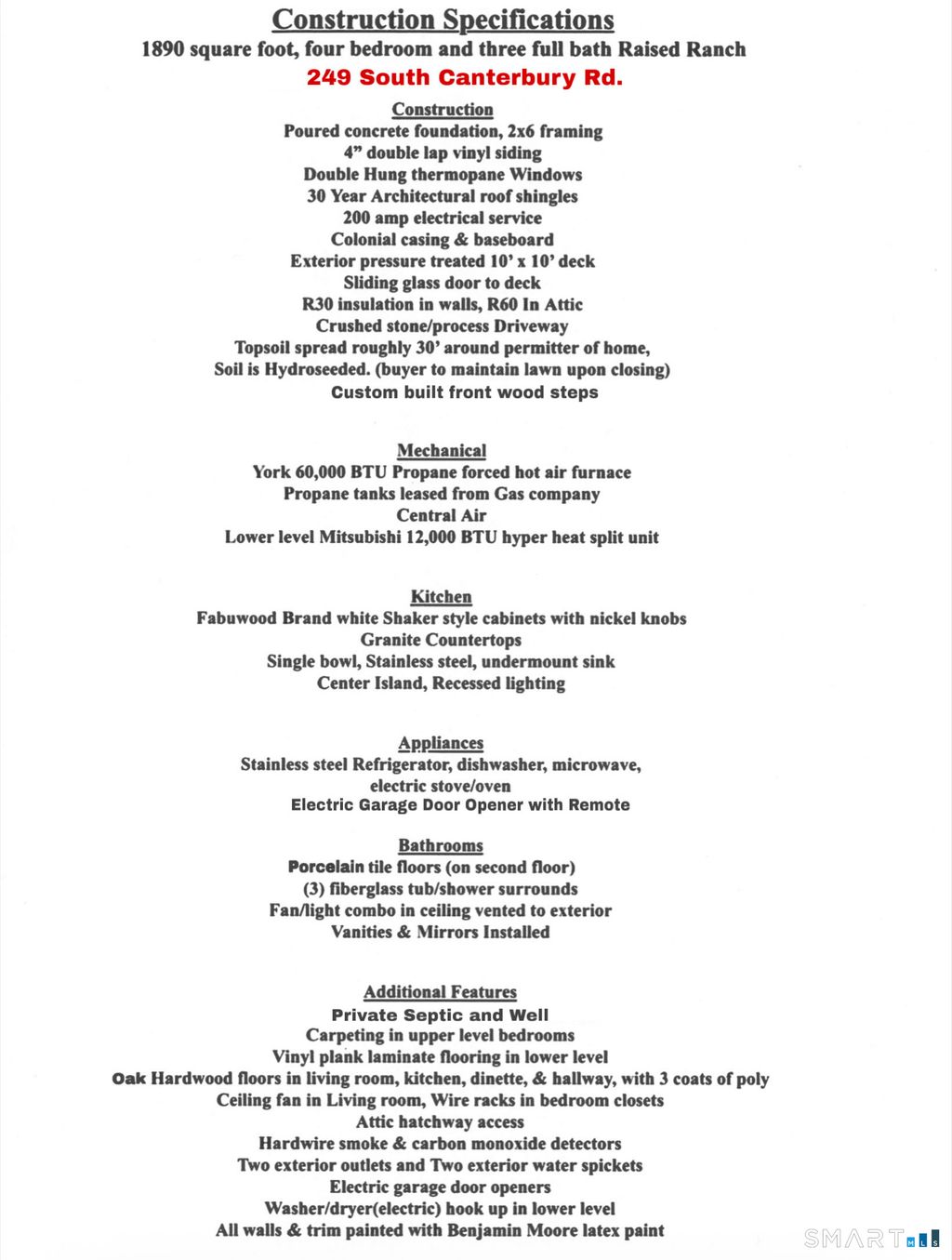 A Wonderful opportunity to own a BRAND NEW and quality constructed home in Canterbury. Presently under construction and soon to be ready for a new owner to enjoy. Spacious FOUR bedroom and THREE FULL bath, Contemporary Raised Ranch, consisting of 1890 square feet of living space. The home has an open concept with vaulted ceilings and hardwood floors in the upper living area and kitchen. The kitchen is fully applianced, with granite counter tops and a center island. The four bedrooms are spacious and the home has the flexibility for the primary bedroom to be on either the upper of lower level. There is a huge two-car garage, exterior deck, energy efficient warm air heat, central air, and much more. Do not miss the opportunity to own a brand new home!!! Listing photos depict the same home, planned layouts, and nearly identical finishes.