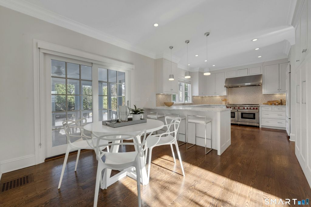 Sophisticated and timeless, this beautifully crafted colonial offers refined living in a private Greenwich setting. Designed with both elegance and functionality in mind, the home features 5 bedrooms, 4.1 baths, sun-filled interiors, and graciously scaled rooms ideal for entertaining and everyday living. The heart of the home is the chef's kitchen, seamlessly flowing into the main living spaces. Rich hardwood floors, two fireplaces, and thoughtful architectural details create a warm yet elevated atmosphere throughout. A fully finished lower level provides flexible space for a media room, gym, or playroom. Outdoor living is equally inviting with a screened porch, stone patio and a fenced backyard, offering privacy and tranquility. A rare opportunity to enjoy polished, move-in-ready living just minutes from downtown Greenwich.