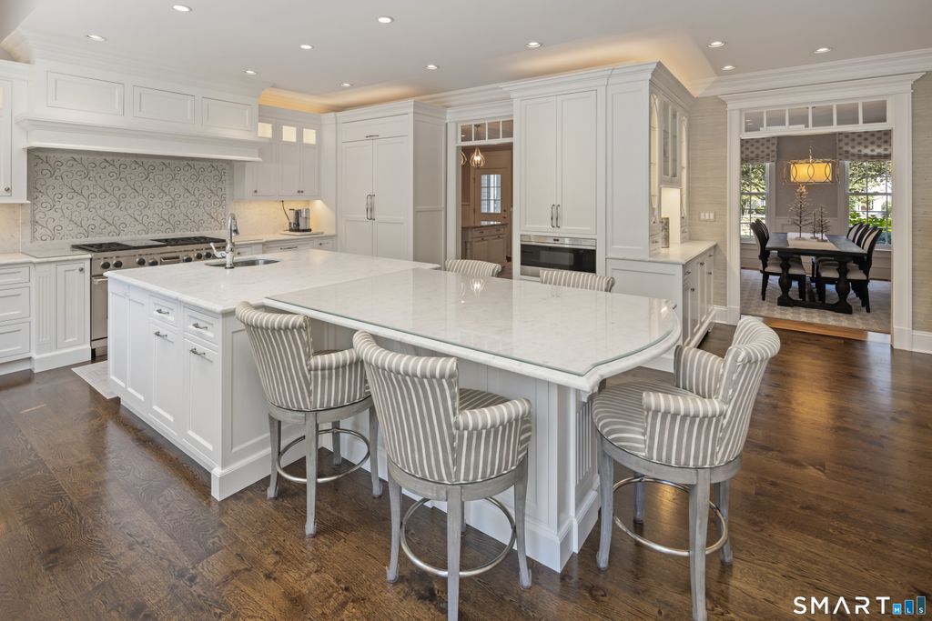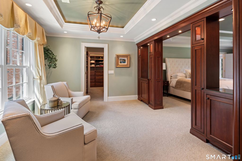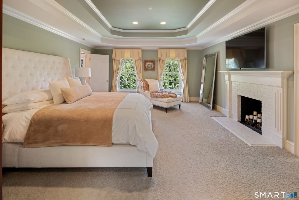 *New Tax Assessment for 2026-2027 $1,949,290. In an idyllic Greenfield Hill location, this magnificently proportioned and beautifully constructed 6642 square foot Colonial enjoys a gorgeous, gated 2 Acre property, manicured and landscaped to perfection, with an expansive two-tiered Granite Terrace and stunning 20' by 40' gunite Pool overlooking sweeping lawns. Greatly contributing to the overall symmetry of this classic design, the luxurious floor plan includes five Bedrooms, six full baths, two powder rooms, (Living Room, Den, and Family Room each with Fireplace), formal Dining Room, Designer Kitchen, Summer Kitchen, stunning Primary Suite with 2 Full Baths, open Great Room on the 2nd floor, as well as versatile, finished space on the third floor. The spacious finished Lower Level (additional 1528 square feet) features a fabulous Gym with mirrored walls, Recreation area and Full Bath. Embracing a lifestyle of serenity & enjoyable entertainment, refined architectural elements and custom detailing throughout combine to further enhance this very stately and impeccable home. First Floor: 2-story Entrance Hall with herringbone wood flooring. Powder Room with tile flooring and pedestal sink. Living Room with hardwood flooring. Den beyond sharing double-sided gas Fireplace. Office with hardwood flooring, cherry cabinetry and built-ins, and ceiling fan. Summer Kitchen (with access to Pool Terrace) with porcelain tile flooring, PLEASE OPEN ADDENDUM FOR FURTHER DESCRIPTION