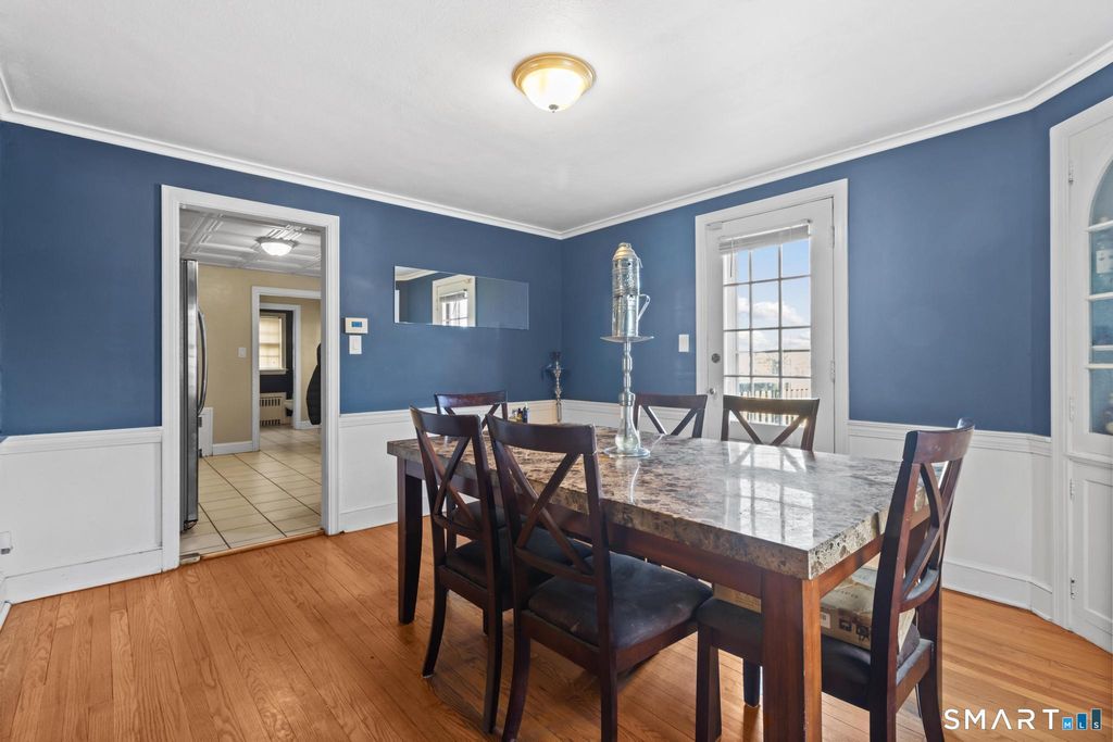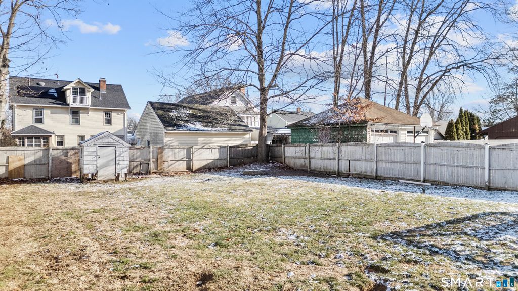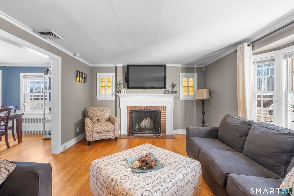 Welcome to 168 Hubbard Road - a charming 4-bedroom Colonial nestled in the desirable South End, just moments from the Wethersfield line and directly across from Goodwin Park. This home combines classic appeal with modern comfort. Step inside to a tiled foyer with double closets for added storage. The spacious living room is highlighted by a bay window, crown molding, and a cozy wood-burning fireplace, offering a warm and inviting atmosphere. The formal dining room features a built-in corner cabinet and a French door leading to the backyard, perfect for seamless indoor-outdoor living. The eat-in kitchen, alongside a convenient half bathroom and mudroom, provides easy access to the garage and outdoor space. The unfinished lower level presents endless potential, with a second fireplace, ready to be transformed into additional living space. The fenced-in backyard is an entertainer's dream, complete with a large deck ideal for gatherings and relaxation. Additional highlights include a high-efficiency natural gas heating system, central air, hardwood floors, and an attached one-car garage. This is a must-see home, offering both comfort and character in an ideal location!