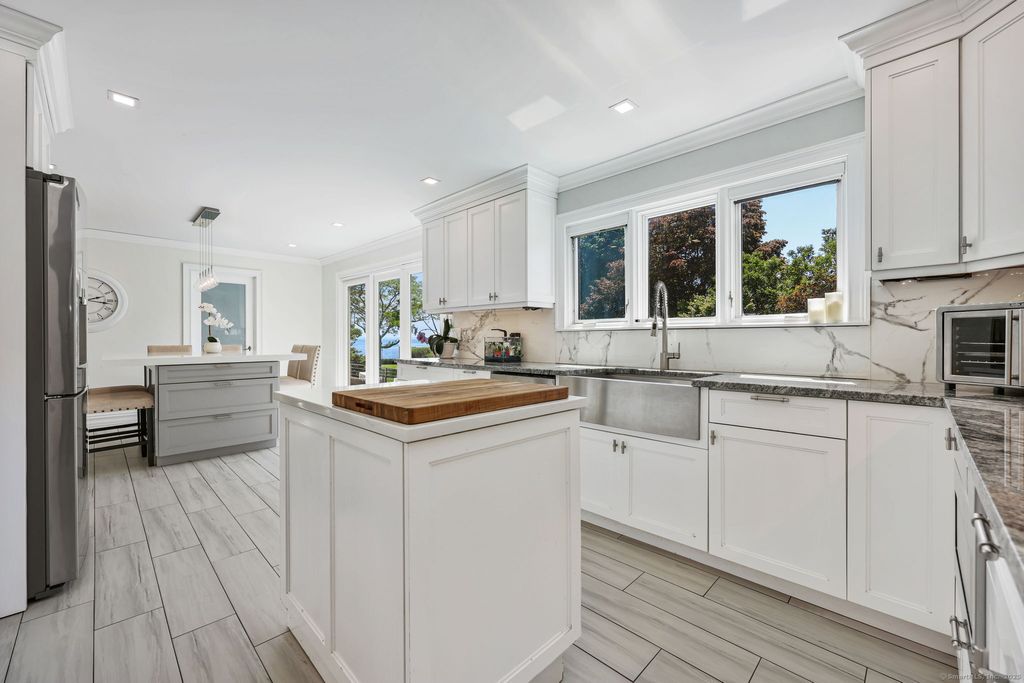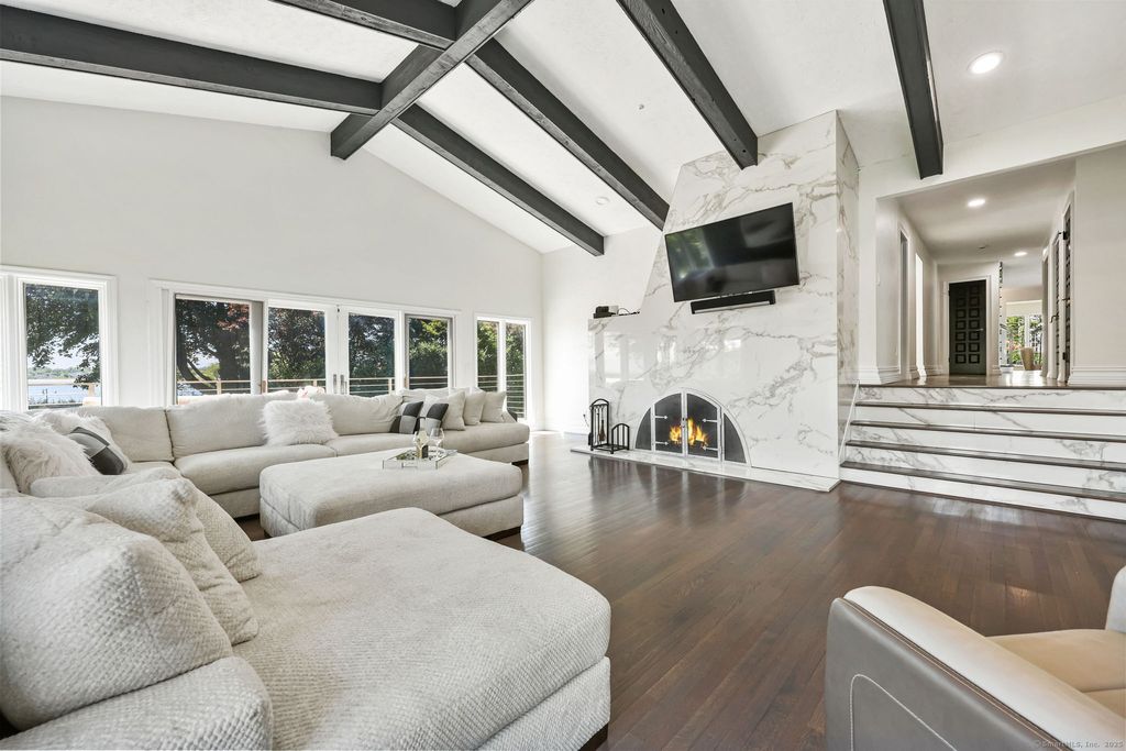 Experience breathtaking views of St. Mary's by the Sea from this beautifully updated Colonial nestled on a hilltop in the highly desirable neighborhood of Black Rock. The spectacular vistas of Long Island Sound are enhanced by the multi-level decks and patio providing calming sunrises and colorful sunsets. The outdoor kitchen is great for entertaining with a grill, oven and fire pit. Perfect for relaxing with your morning coffee, watching the Wednesday sailboat races, enjoying sunset cocktails, or celebrating the 4th of July fireworks. Every room offers high ceilings and different views of the water so that you feel like you are on a year-round vacation. The oversized family room offers a vaulted ceiling, marble wood-burning fireplace and sliding doors out to the deck. The bright, sunny kitchen also opens to the deck with a center island, built-in coffee maker, and a Bertazzoni gas range. Black Rock's vibrant attractions are just minutes away, including St. Mary's by the Sea walkway, Fayerweather Lighthouse, Ellsworth Park and the scenic tidal estuary. For entertainment and conveniences, downtown boasts lively restaurants, music venues, breweries, and shops. Commuters will appreciate the proximity to the Metro North train station, just five minutes from home, offering easy access to New York City. A true hidden gem, Black Rock combines serene living with vibrant community activities. Come discover it today!