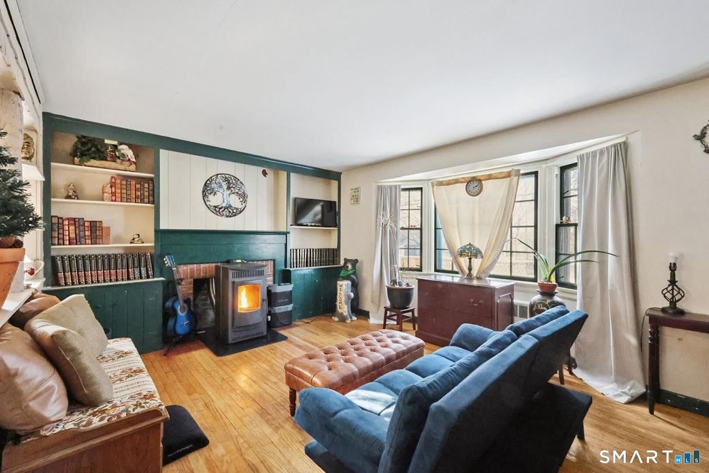 Charming 3 or 4 bedroom Cape Cod style property located on Meriden's east side. This home features original hardwood floors throughout, an eat-in kitchen, and an open-concept living room ideal for everyday living and entertaining. Enjoy the pellet stove in the living room for added warmth and comfort. This home includes one full bath and 2 bedrooms on the main level and 2 more bedrooms on the upper level. This property is perfect for a first-time homebuyer or anyone looking to downsize. The basement provides great potential to be finished for additional living space. Conveniently located near major highways for easy commuting.
