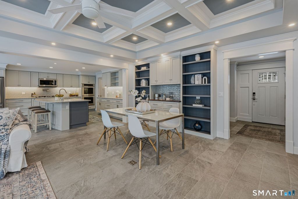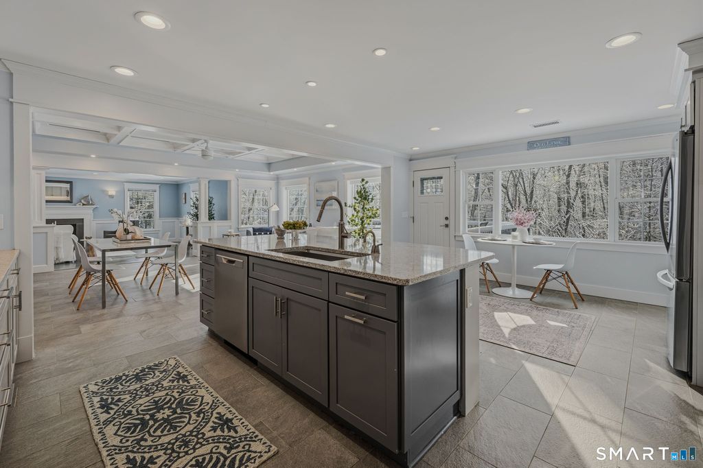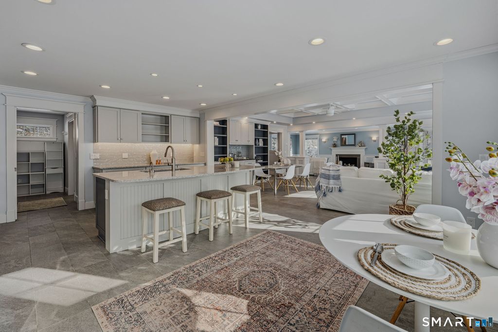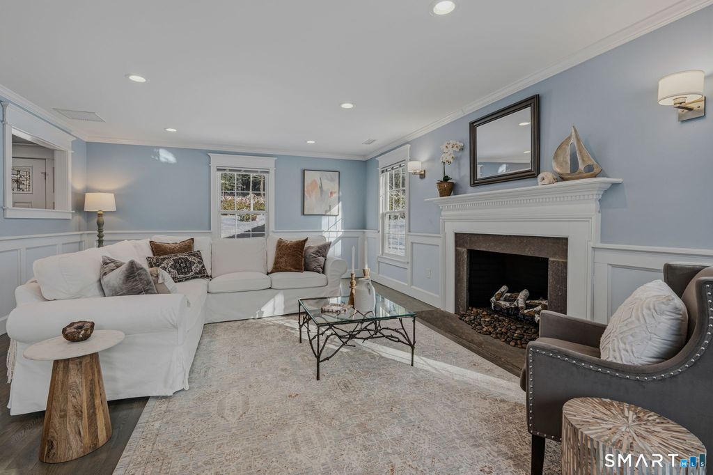 Welcome to this fully renovated ranch-style residence, offering effortless single level living in a peaceful coastal Connecticut setting. Thoughtfully designed to accommodate large gatherings, this home blends timeless design with an inviting layout ideal for both everyday living and entertaining. At the heart of the home is a gorgeous chef's kitchen, appointed with high-end finishes and an open concept design that flows seamlessly into a spacious family room creating the perfect setting for hosting family and friends. A deck directly off the kitchen extends the living space outdoors, ideal for summer evenings, al fresco dining, and enjoying the fresh coastal air. A separate living room with gas fireplace provides a cozy retreat after days spent along the shoreline, while the primary bedroom on the main level offers both comfort and convenience. The spa-inspired primary bath features radiant heated floors, adding a luxurious touch to daily living. The property is meticulously landscaped and highlighted by a circular driveway, a two-car garage, and a separate shed perfect for hobbies, storage, or beach and outdoor gear. Additional features include a full-house generator, ensuring peace of mind and uninterrupted comfort year-round. Located in a quiet neighborhood, this move in ready home captures the beauty of coastal Connecticut living, offering space, style, and a relaxed yet refined lifestyle close to beaches, marinas, and charming shoreline towns.