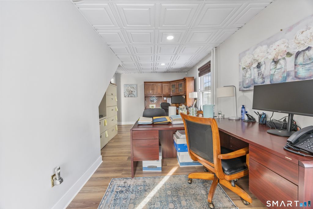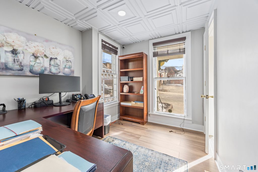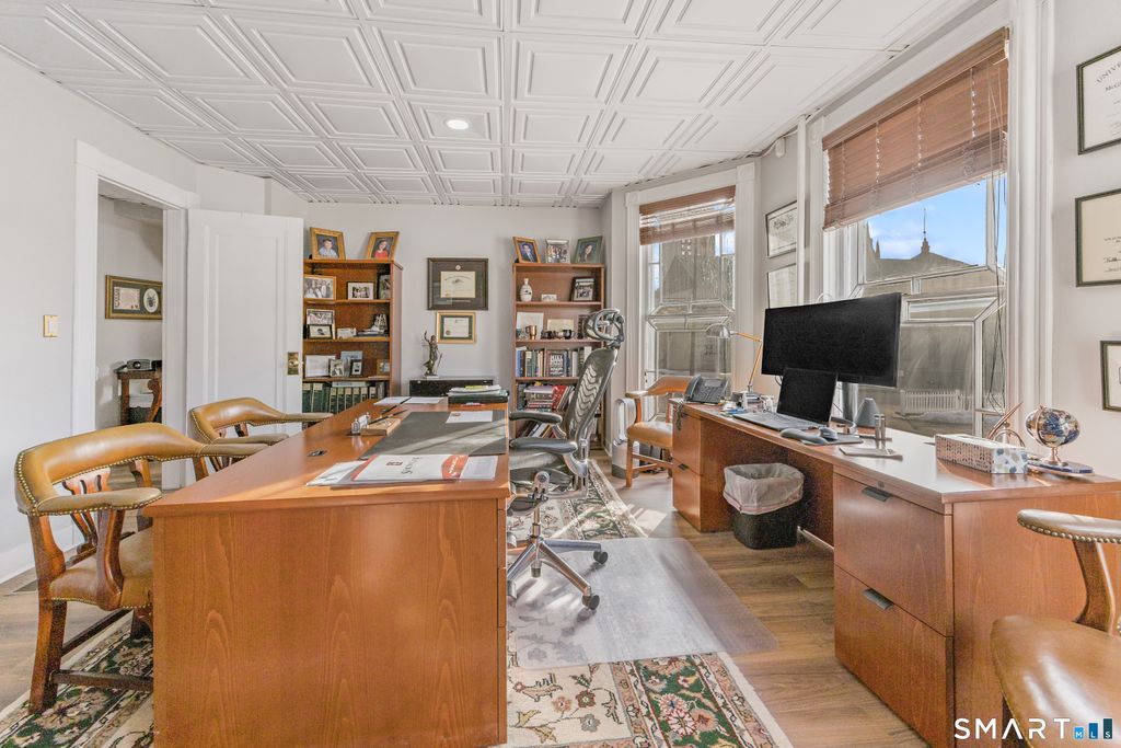 Step into history in the heart of downtown Waterbury and make it your own. This distinctive property offers a rare opportunity to own a piece of the city's past while creating your future. Whether you're envisioning a professional office, boutique business, or a unique live/work concept, the possibilities are endless. Surrounded by the energy of downtown and rich local heritage, this space is ready to support your next chapter. Own history, build your vision, and call this property home sweet home. Zoned commercial yet recognized as mixed use, this property allows for residential conversion, offering exceptional flexibility and income potential. The current layout features office space along with 2 one-bedroom apartments on the third floor, providing an immediate cash-flow opportunity with additional upside. The second floor offers versatile options, suitable for conversion to a 4-bedroom apartment or 2 separate office suites, allowing investors or owner-users to expand, reconfigure, or reposition the space to meet their vision. Additional features include 5 covered bay garages, plus both off-street and on-street parking for added convenience. Recent updates include all new electrical panels (1/26), fresh interior paint, architectural ceilings, chimney repointed within the last 10 years, a roof approx 10 years old, a recently rebuilt heating system, forced hot air heat, updated water line, LED recessed lighting, and on-demand hot water.
