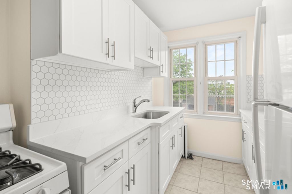This spacious one-bedroom apartment is located on the second floor and features beautiful hardwood floors throughout. The living room includes a dining area, perfect for entertaining or relaxing. The updated kitchen boasts quartz countertops and a new backsplash, while the modern bathroom adds to the unit's appeal. Enjoy the convenience of an assigned parking space and an on-site shared laundry room. Ideally situated just minutes from the Ridgeway Shopping Center, popular restaurants, Scalzi Park, LA Fitness, and public transportation-with easy access to the Metro-North train station.