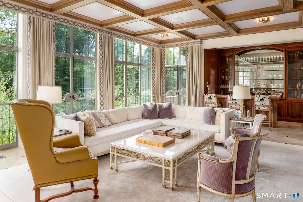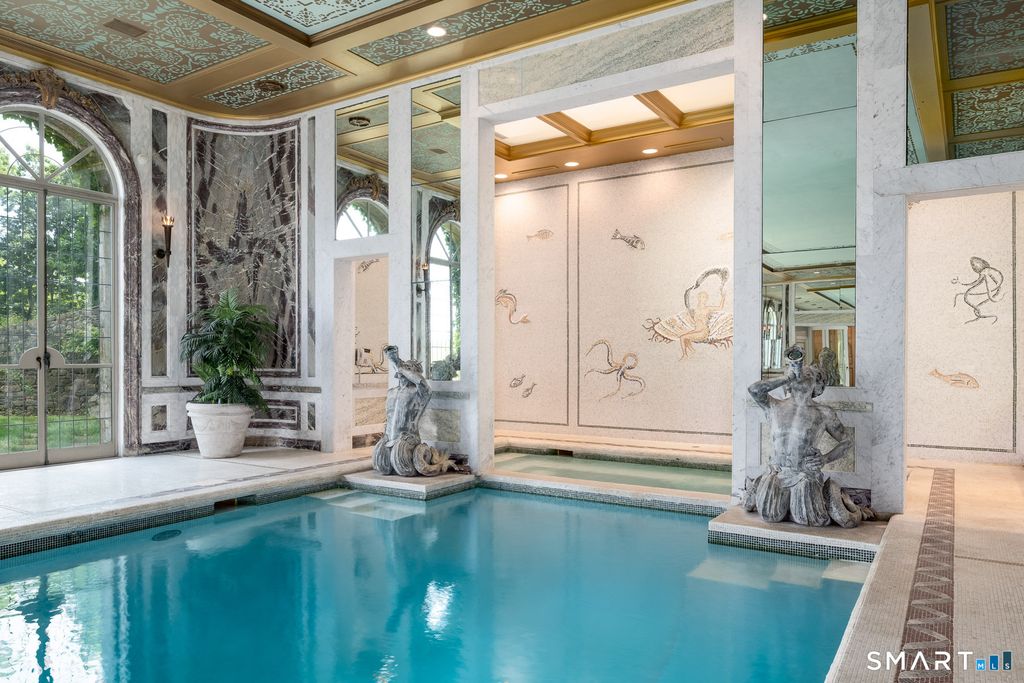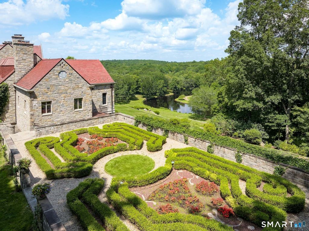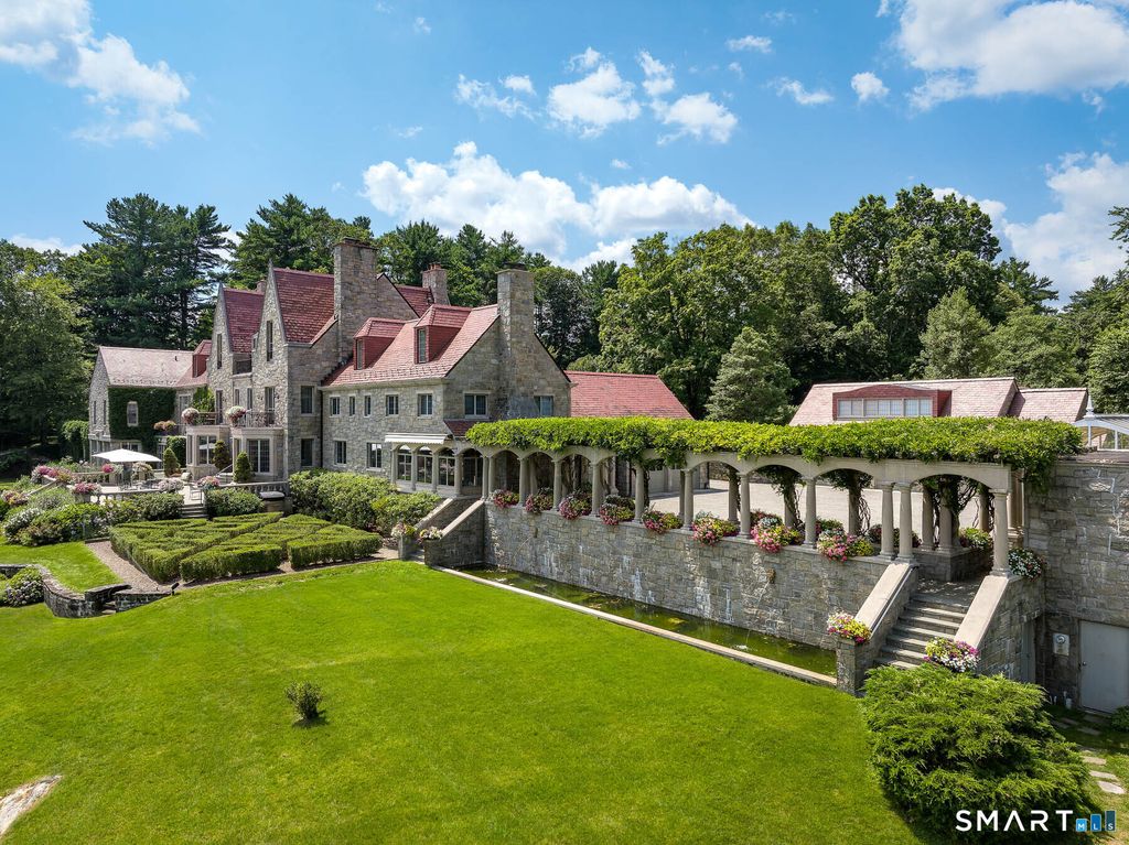 An extraordinary 268-acre legacy estate spanning the New York-Connecticut border, Hillandale offers unrivaled privacy and timeless grandeur. Once owned by the Sulzberger family of the New York Times, the 15,000+ sq ft, eight-bedroom European-inspired manor has been meticulously restored and features magnificent formal entertaining rooms, 11 fireplaces, two elevators, a paneled library, sun-filled conservatory, billiard room, sauna, gym and an Olympic-sized indoor pool with spa. There is also an outdoor pool with dedicated pool house. Vast, beautifully designed grounds showcase formal gardens, a private lake, woodland trails, a hedge maze and lighted tennis court. Four separate guest houses and a separate garage apartment on the property create a truly unparalleled private compound. This is a once in a generation offering for those seeking exceptional elegance and seclusion. Total Acreage 268+ acres: 173+ in Pound Ridge, New York, 95+ in Stamford, Connecticut