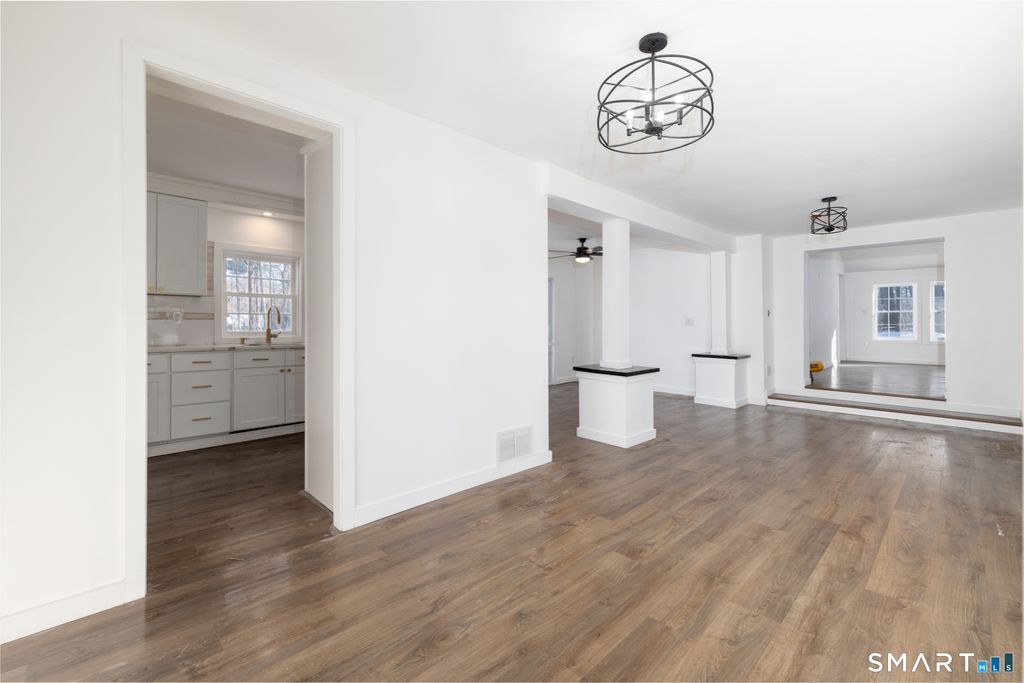 Not one expense spared with this gorgeously renovated and built-up Ranch with 4 bedrooms and 2 full bathrooms. Upon entrance, you're greeted with an open concept kitchen, sitting room and dining room with slider out to the back patio overlooking the level backyard with lots of space for entertainment...play, sports and/or a pool for the summer if that's what you desire. Enjoy a quiet space for yourself, or maybe your beloved pet, with the window bench overlooking the front yard. The large family room features a vaulted ceiling, recessed lighting and plenty of room for big, comfy furniture to cozy up on and watch your favorite movies and shows. Adjacent to the family room is your primary suite with french doors out to the back patio, a full bath with tiled stand-up shower, and 3 closets for his and hers and linen closets. On the opposite side of the family room are 3 more generous size bedrooms, a 2nd full bathroom with tub and a tucked away toilet, and lastly a convenient, dedicated laundry room. All new plumbing, new electrical, new ductwork, power and cable run to each room, new roof, new windows and doors, new siding, nothing to do but move in! Aside from being on a quiet road with only one other home on it, and being bordered by the baseball field and North Haven Middle and High School, this has also been approved for a 2 car attached garage. No major expenses for a long time so all you have to do is move in!