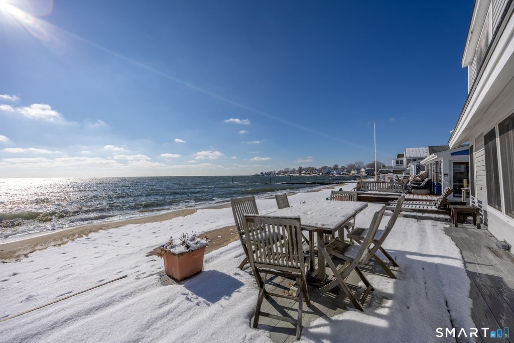 Adorable 4-bedroom, 1-1/2 bath beachfront retreat available as an academic rental from early September through the end of May in the highly sought-after Chalker Beach neighborhood of Old Saybrook. Offered fully furnished with all utilities included, this charming coastal home is the perfect place to enjoy off-season shoreline living. Warm coastal wood paneling accents the walls and select ceilings, creating a relaxed beach-house vibe throughout. The cozy living/family room features a stunning wall of windows with sweeping ocean and beach views, while the dining area and eat-in galley-style kitchen with a laundry room conveniently located just off the kitchen make everyday living and entertaining a breeze. A full bath is located on the first floor, with a convenient half bath upstairs. Step outside to a large deck and covered front porch, ideal for soaking in the sights and sounds of the shoreline. Walk right out your door and directly onto the beach-beautiful views await from nearly every window. Additional features include off-street parking for up to four cars. Enjoy all that Old Saybrook has to offer, including fantastic restaurants, boutique shopping, marinas, cultural attractions, and easy access to the train station for commuting or weekend getaways. Coastal living at its best! Academic rental available September 6, 2026-May 31, 2027.