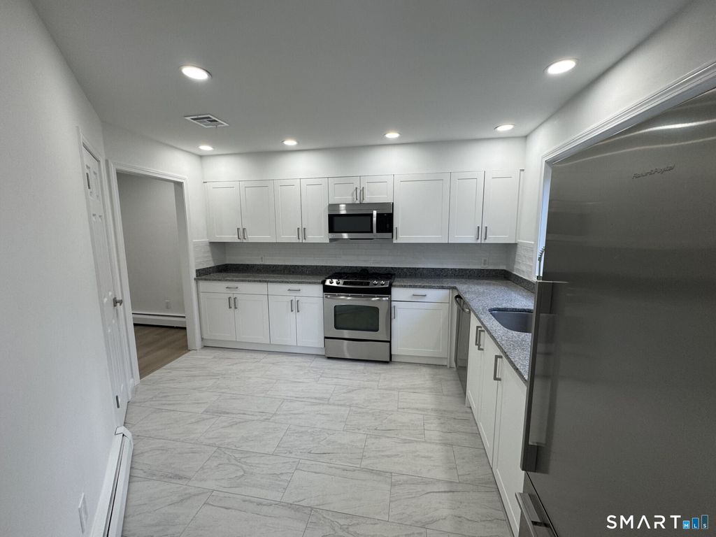 Welcome to 4 Earls Court, Unit C, Farmington, CT! This beautifully updated townhouse has been completely modernized from top to bottom with today's most desirable features and finishes. The inviting living room offers a cozy working fireplace and sliding doors that open to a private back patio-perfect for relaxing or entertaining. The dining area flows seamlessly into a bright, white, and stunning kitchen designed for both style and function. Upstairs, a sun-filled landing provides an ideal space for a home office or reading nook, finish this off with cabinets or shelves for extra storage. The second floor features two spacious bedrooms with vaulted ceilings and abundant closet space. The primary suite includes a full en suite bath, while a second full bath and a laundry room are conveniently located off the hallway. Additional highlights include a one-car garage and ample guest parking spaces for added convenience. Located close to highways, UConn Health Center, shopping, and restaurants, this home combines comfort, convenience, and modern elegance in a prime Farmington location. Heat, Cooking Gas, and Hot Water are included in rent.