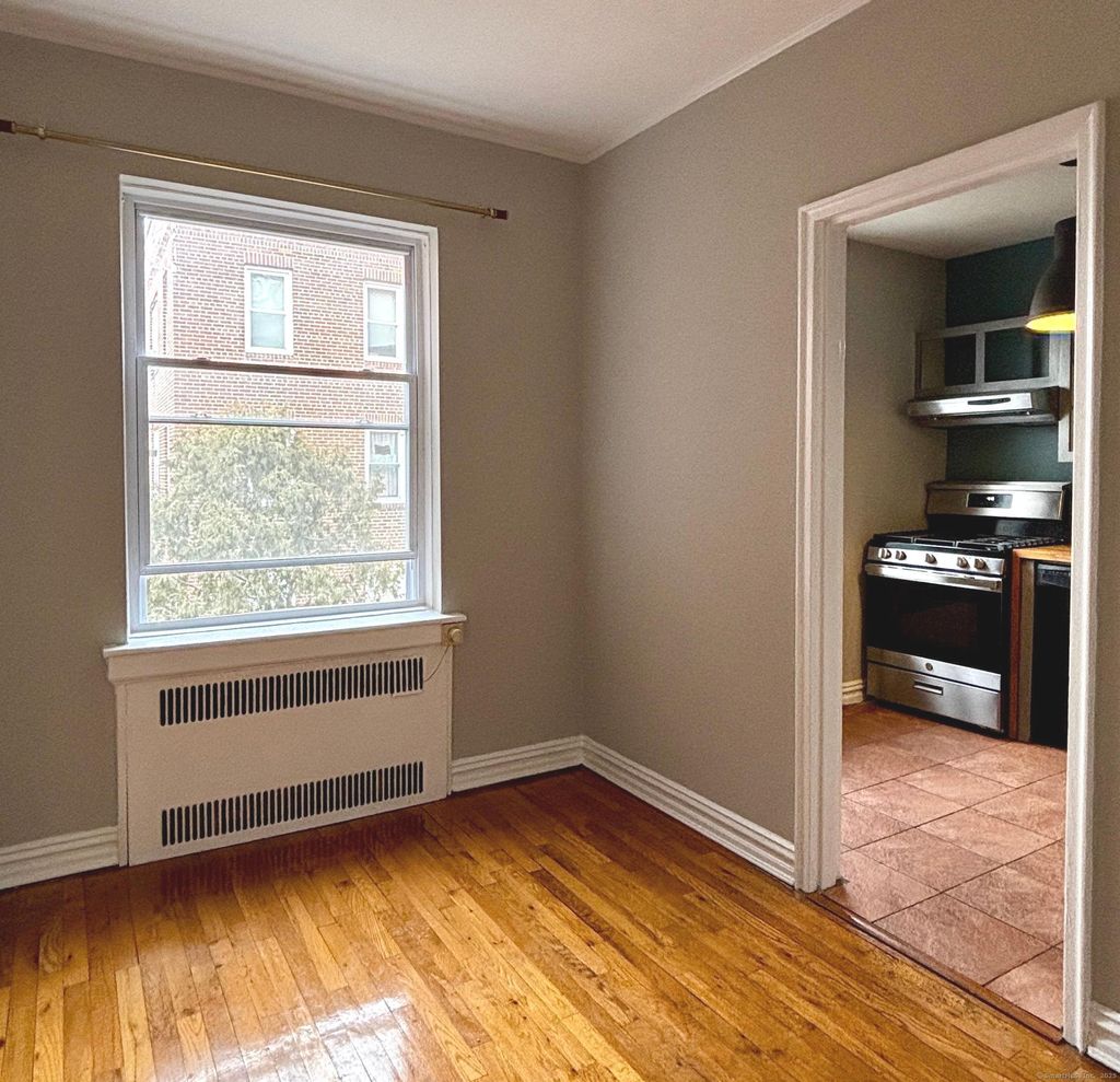 Rent includes heat, hot water & parking! This stunning & large apartment is a privately situated, top floor, corner apartment tucked away in the heart of downtown Stamford and offers sunny, bright, space with high 9' ceilings, hardwood floors throughout, character & charm! Enjoy 1200+ square feet, a cool Euro-inspired kitchen & windows galore. The Primary bedroom has a private newer bath w/shower stall. The second bedroom is also very large! Welcome to 70 Strawberry Hill, an enchanting mid-rise apartment community set back from the road on picturesque grounds enhanced with courtyards of flowers, gardens & trees! On site super. Common area laundry & storage available on lower level. Pet friendly, 1-dog permitted, must be 20 lbs. and per owner & management discretion. Enjoy quality space steps to all downtown Stamford attractions & conveniences. Tenant just vacated, cleaning in progress. Will be immaculately presented to our new resident!