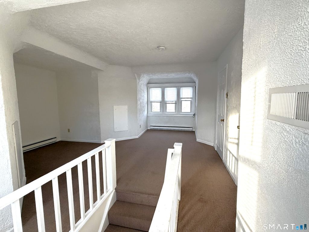 Spacious 2BR/1BA apartment occupying the 2nd and 3rd floors of a duplex, ideally located in Springdale, one of Stamford's most convenient and quiet residential neighborhoods. This freshly painted unit offers a flexible layout with bedrooms on separate levels, ideal for privacy, home office use, or shared living. Large eat-in kitchen with dishwasher, full bathroom with tub, washer/dryer in unit, and separate in-unit storage area. Parking is a standout feature with a dedicated off-street parking lot plus abundant on-street parking. Peaceful setting while remaining close to shopping, dining, Metro-North, and major commuting routes.
