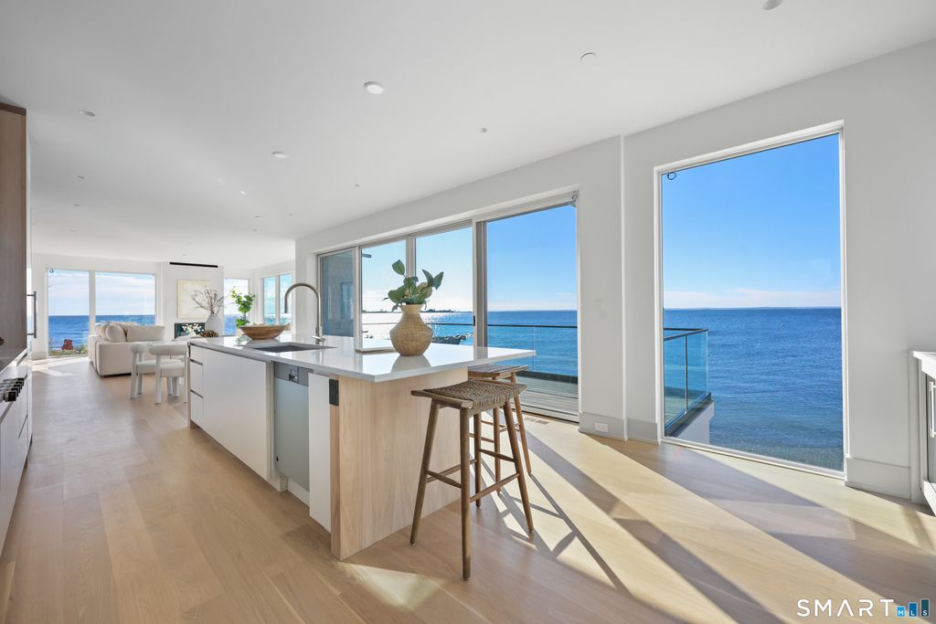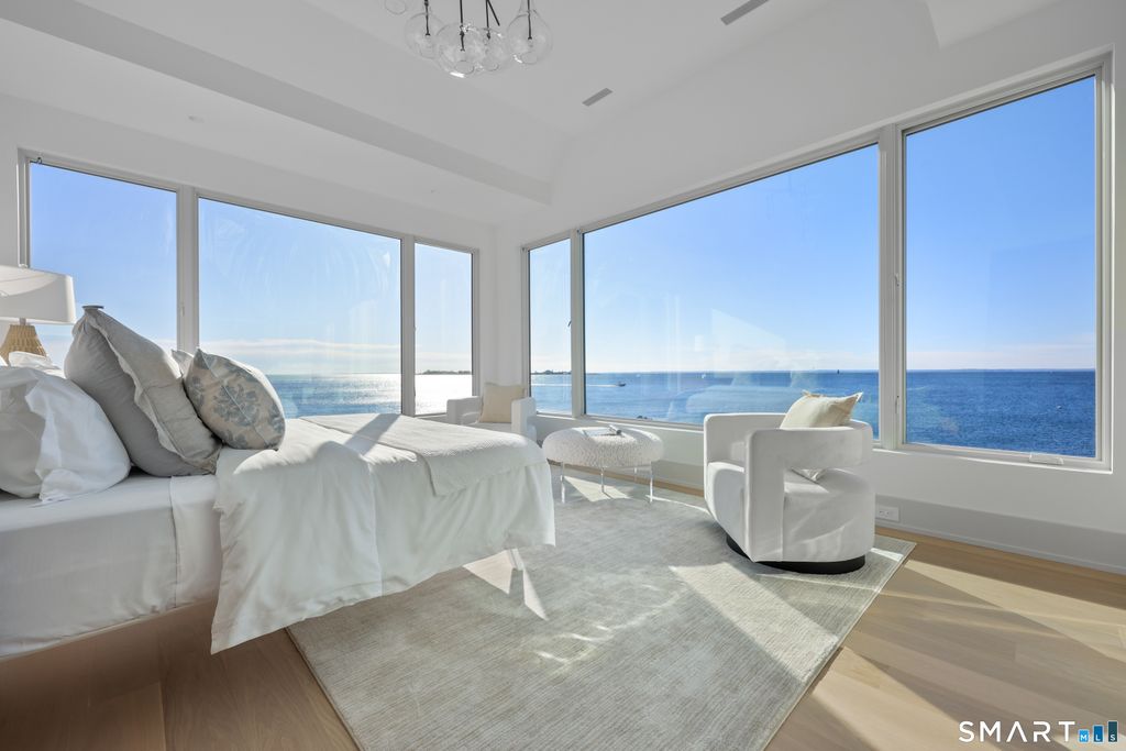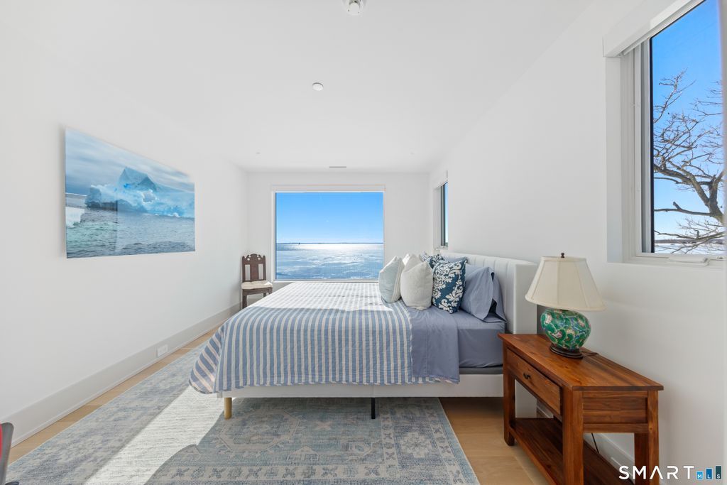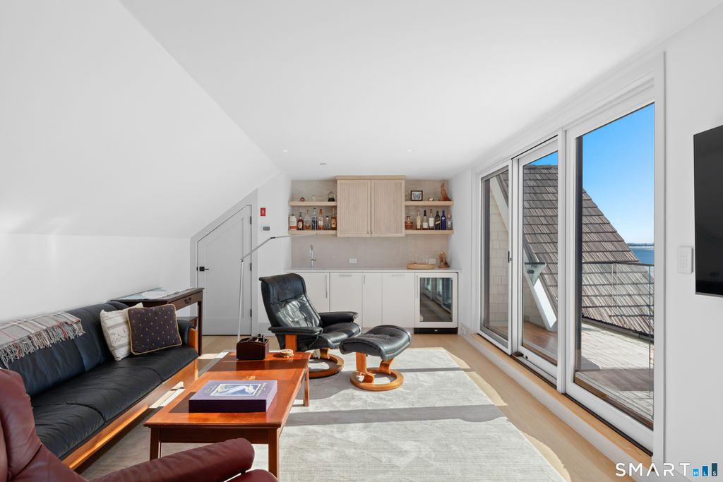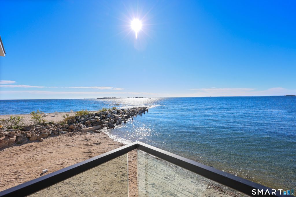 Rare opportunity to live directly on a private beach in Westport this summer. This new home on Saugatuck Island is offered for the first time as a rental. Three plus floors, high ceilings, luxurious 4-bedroom 3700sqft home on the beach offers the unique sensation of floating on Long Island Sound through floor-to-ceiling windows that bring the views and lapping sounds of the tides inside. A large, furnished terrace opens to the beach and is ideal for entertaining. Step from its tiled floor onto the sand for a morning swim or kayak, then shower off the salt and sand in the teak-lined outdoor shower. This open-air, covered space on the beach is a retreat from the summer heat, or a cozy spot with electric heaters for chillier nights. Above it, the main floor is a 70ft-long open-plan space with waterviews in 3 directions framing a gourmet kitchen, dining area, family room and a south-facing balcony, plus an office and butler's pantry. The 4 bedrooms are all en suite incl. a stunning primary suite with a dramatic corner water view and spa bathroom. A 3rd-floor den with wet bar and balcony can be another spot for yoga, sunset cocktails or used as a kids' hangout. Finished off with a 2-car garage and whole-house generator, the beachside home is conveniently located near Saugatuck Village's restaurants & cafes. An 8-minute drive to the train station gets you to Grand Central in as little as 68 min. Enjoy graceful private island living with effortless access. *Three month minimum lease