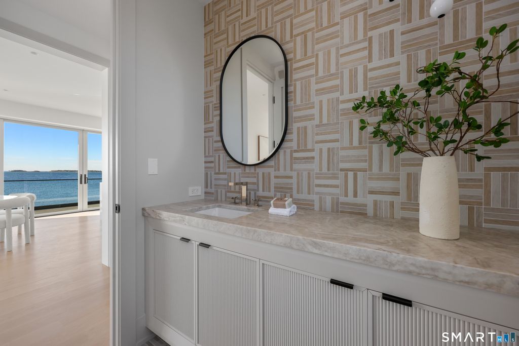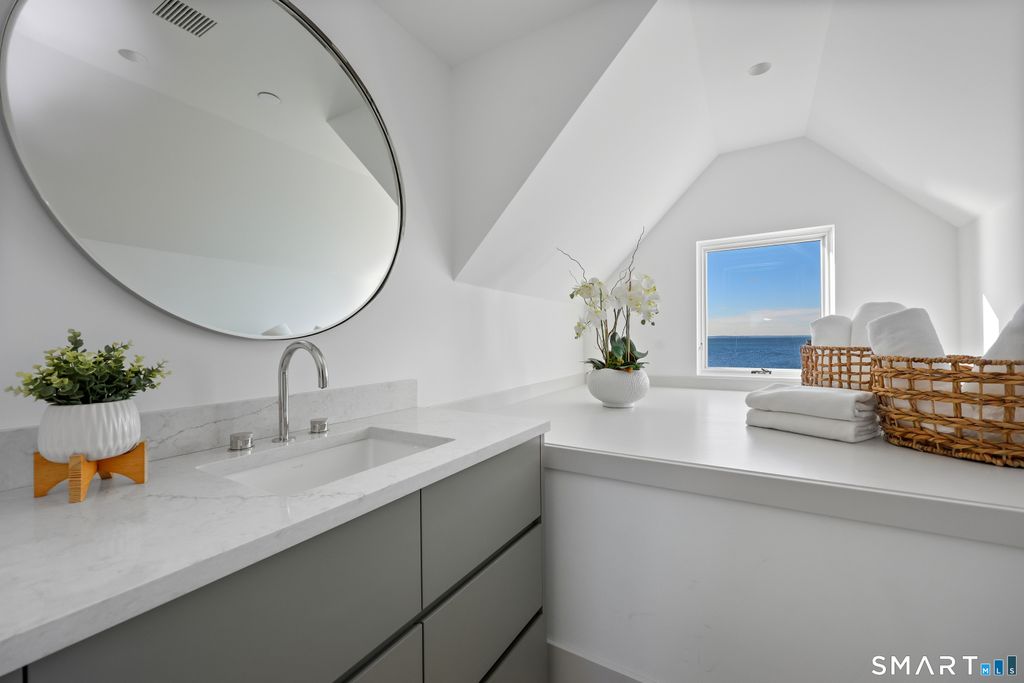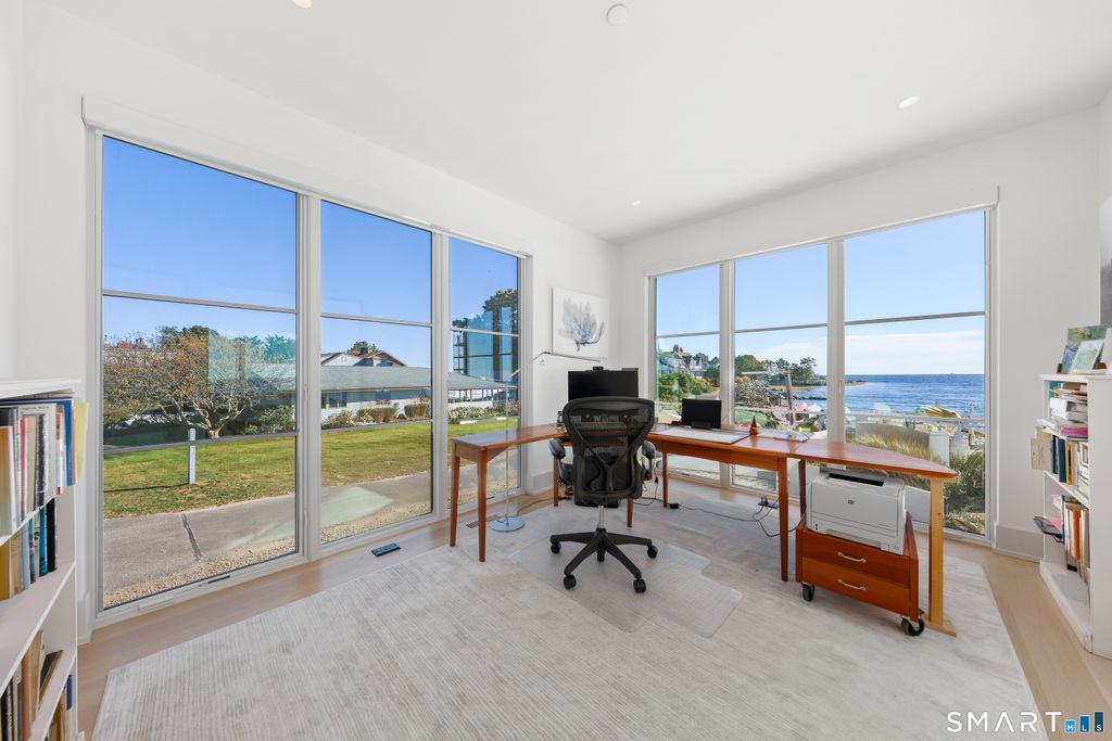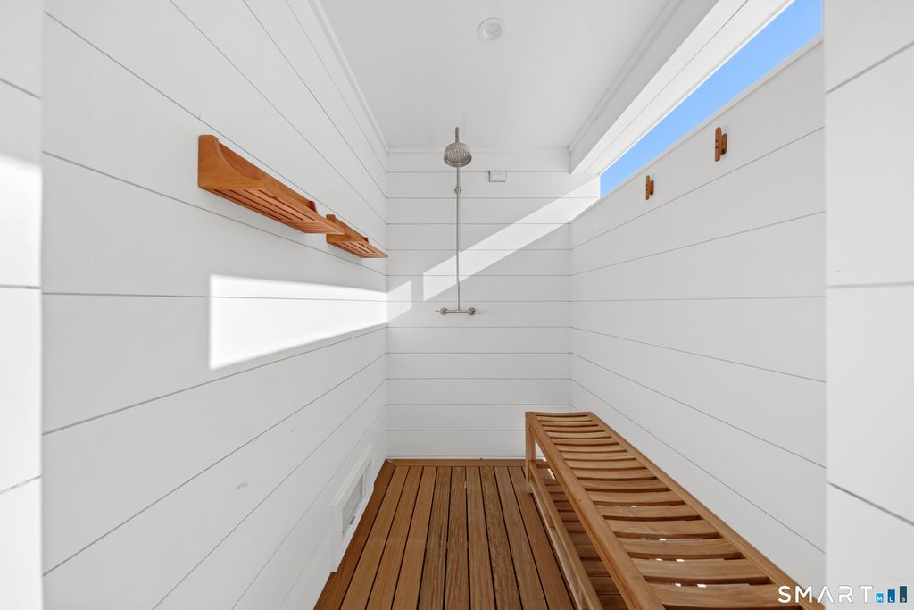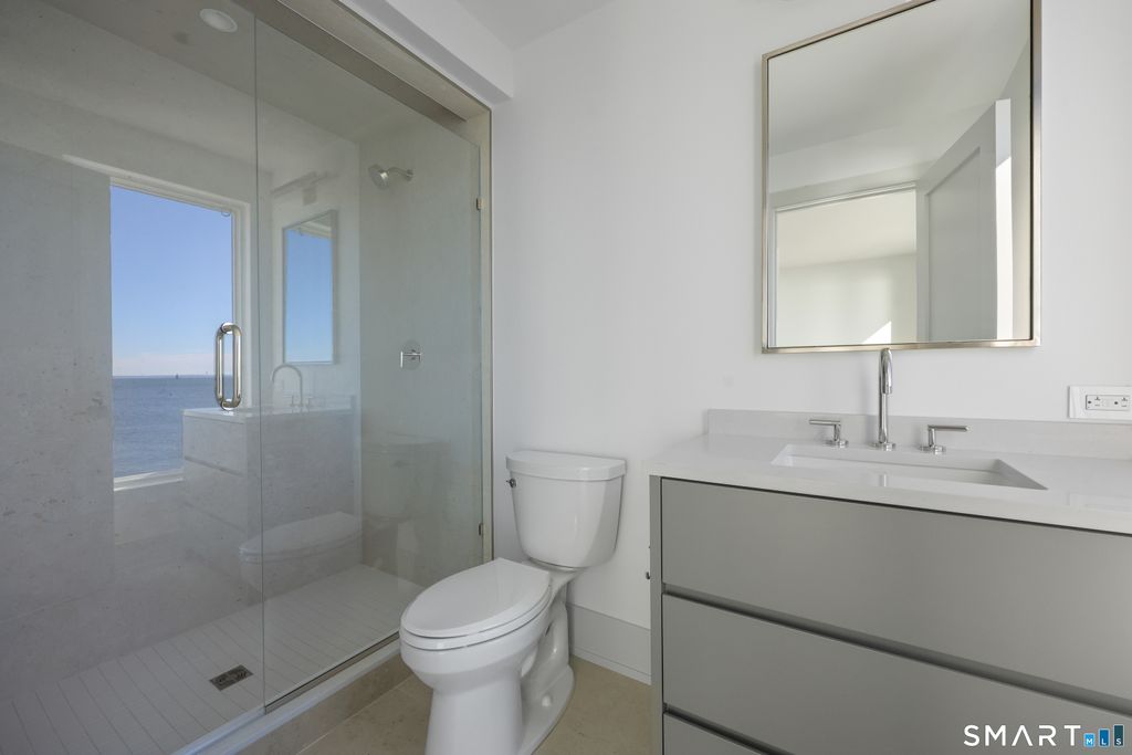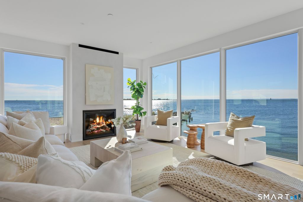 Rare opportunity to live directly on a private beach in Westport this summer. This new home on Saugatuck Island is offered for the first time as a rental. Three plus floors, high ceilings, luxurious 4-bedroom 3700sqft home on the beach offers the unique sensation of floating on Long Island Sound through floor-to-ceiling windows that bring the views and lapping sounds of the tides inside. A large, furnished terrace opens to the beach and is ideal for entertaining. Step from its tiled floor onto the sand for a morning swim or kayak, then shower off the salt and sand in the teak-lined outdoor shower. This open-air, covered space on the beach is a retreat from the summer heat, or a cozy spot with electric heaters for chillier nights. Above it, the main floor is a 70ft-long open-plan space with waterviews in 3 directions framing a gourmet kitchen, dining area, family room and a south-facing balcony, plus an office and butler's pantry. The 4 bedrooms are all en suite incl. a stunning primary suite with a dramatic corner water view and spa bathroom. A 3rd-floor den with wet bar and balcony can be another spot for yoga, sunset cocktails or used as a kids' hangout. Finished off with a 2-car garage and whole-house generator, the beachside home is conveniently located near Saugatuck Village's restaurants & cafes. An 8-minute drive to the train station gets you to Grand Central in as little as 68 min. Enjoy graceful private island living with effortless access. *Three month minimum lease