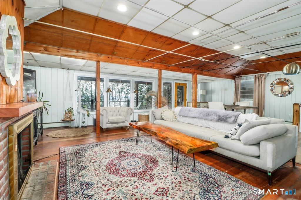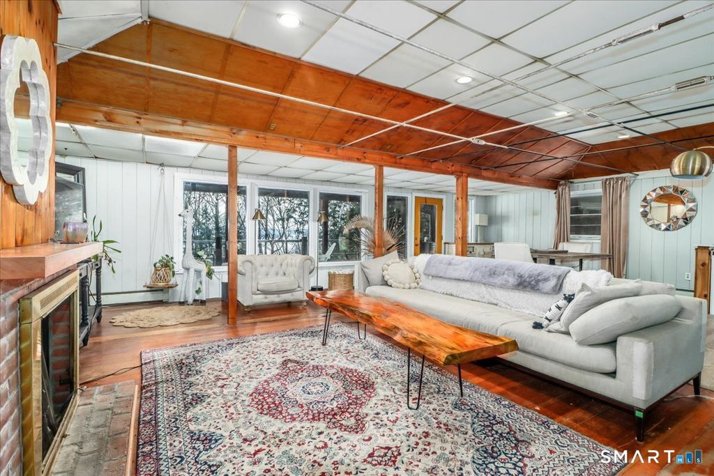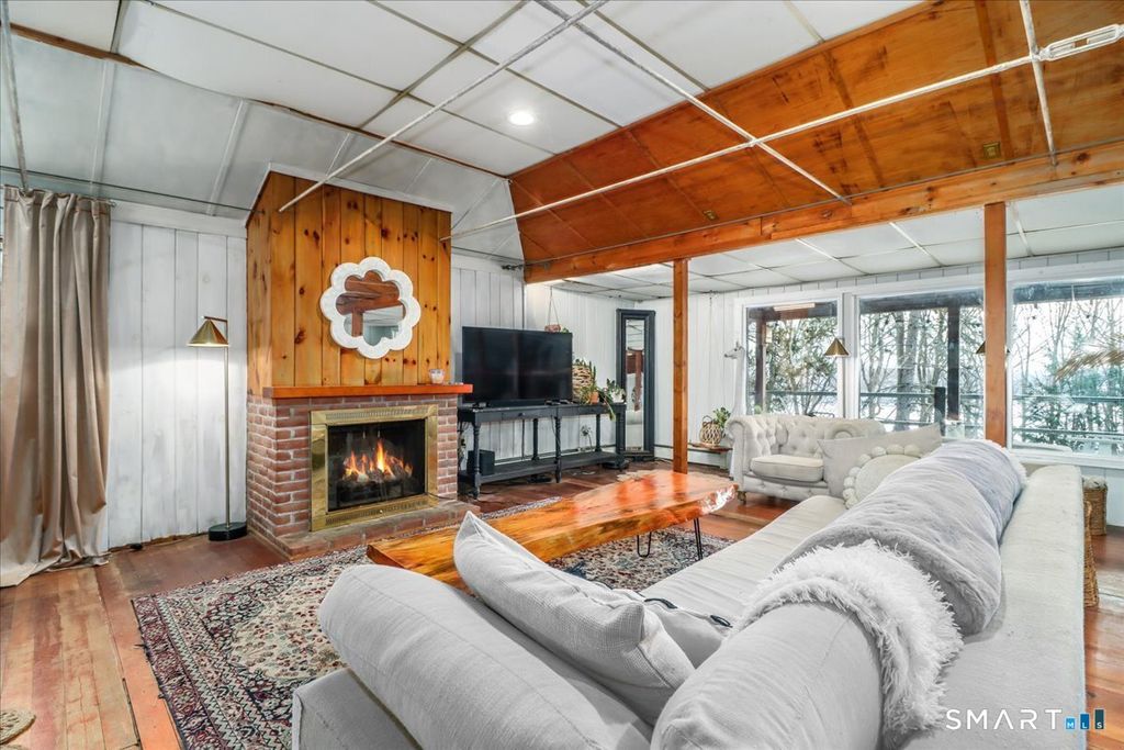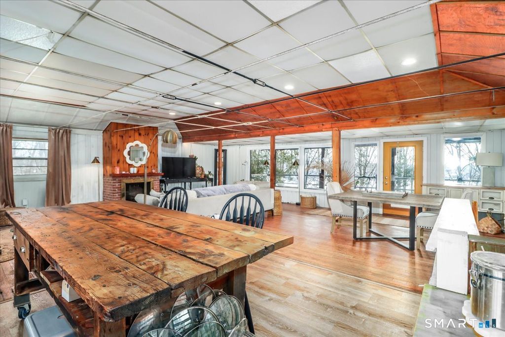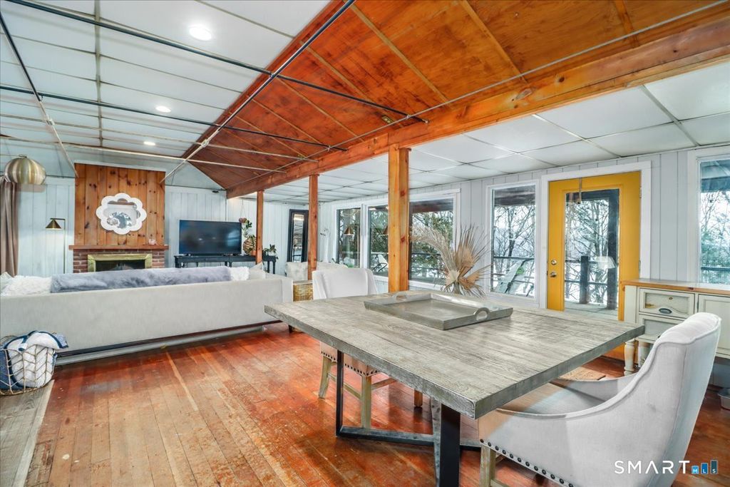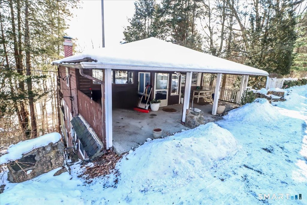 Tucked among the trees with seasonal views of Candlewood Lake, this storybook cottage feels like a hidden retreat where creativity and nature meet. The first floor features an open floor plan with an updated kitchen, living room with fireplace, and a dining area with sliders leading to a deck-perfect for enjoying peaceful lake glimpses and the surrounding natural beauty. The home offers 1-2 bedrooms and 2 full bathrooms, providing flexible living space. The lower level has previously been used as an artist/sculptor/ceramic studio and is equipped with 220 amp electrical service, making it ideal for creative pursuits, workshop space, or additional flexible use. Outside, the property showcases rare and interesting features including old outdoor kilns, a pumphouse, and a second driveway, adding to the home's distinctive appeal. A special retreat for artists, weekenders, or anyone seeking a serene escape near Candlewood Lake. It is truly a unique setting rich with character!