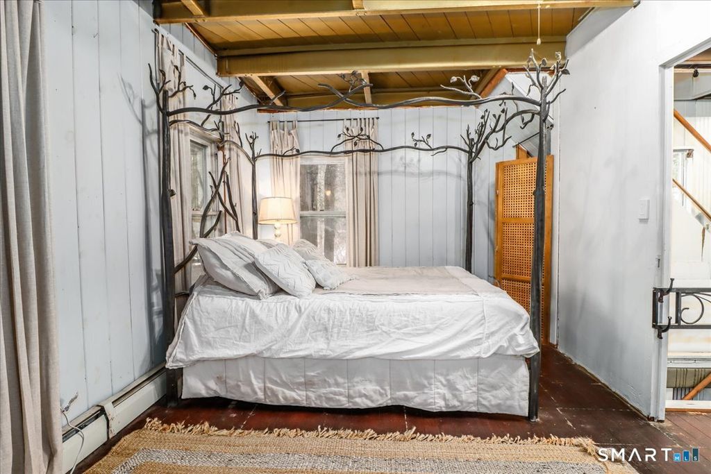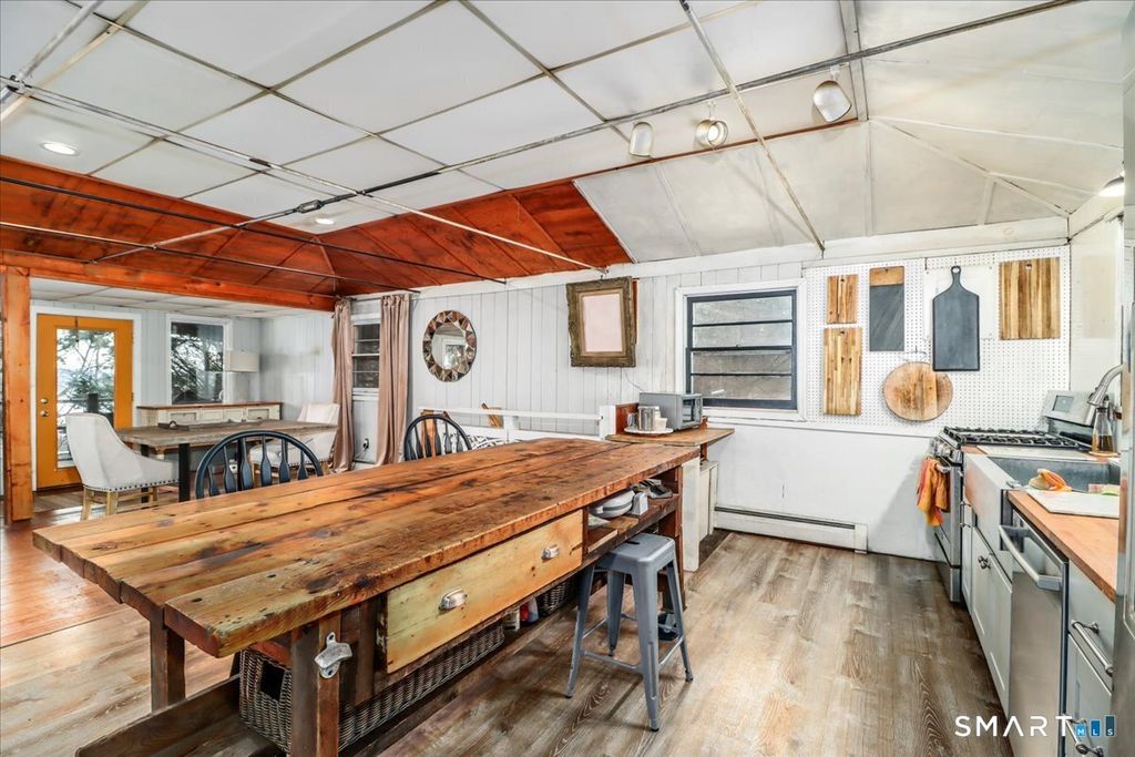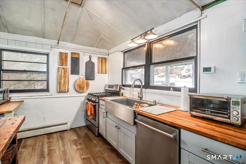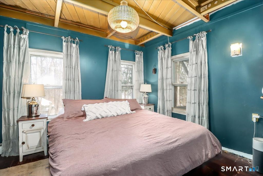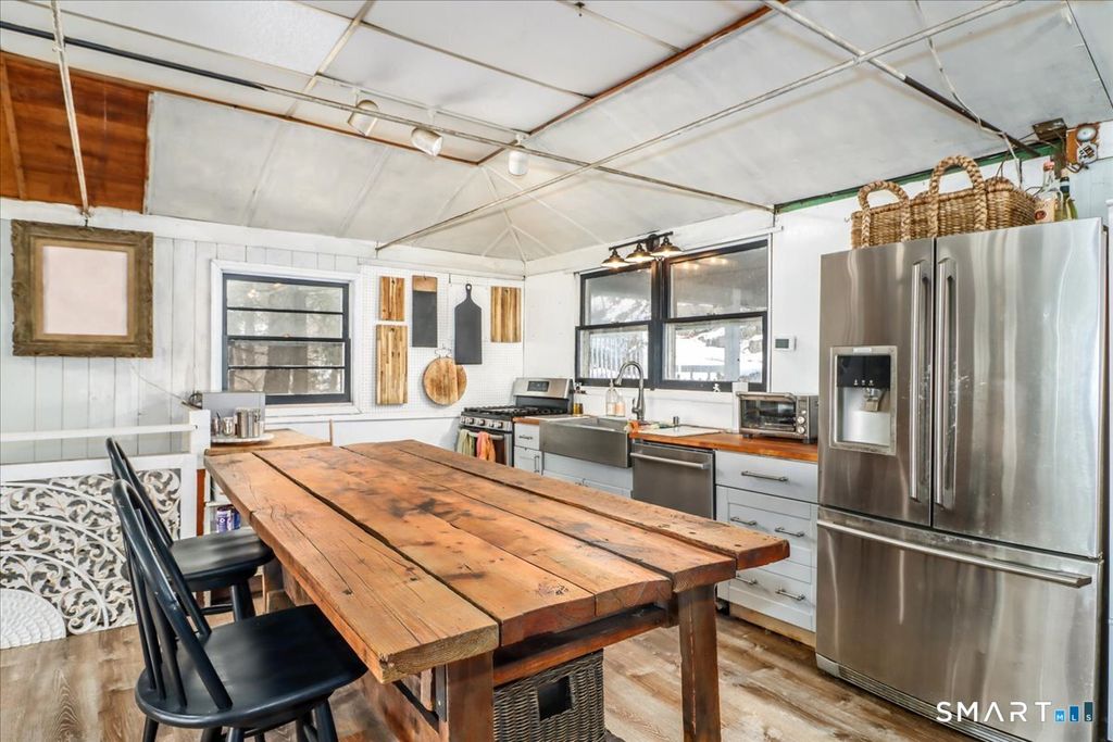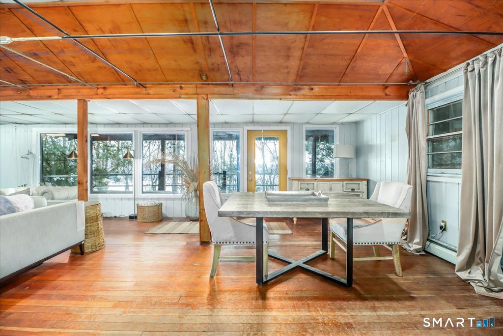 Tucked among the trees with seasonal views of Candlewood Lake, this storybook cottage feels like a hidden retreat where creativity and nature meet. The first floor features an open floor plan with an updated kitchen, living room with fireplace, and a dining area with sliders leading to a deck-perfect for enjoying peaceful lake glimpses and the surrounding natural beauty. The home offers 1-2 bedrooms and 2 full bathrooms, providing flexible living space. The lower level has previously been used as an artist/sculptor/ceramic studio and is equipped with 220 amp electrical service, making it ideal for creative pursuits, workshop space, or additional flexible use. Outside, the property showcases rare and interesting features including old outdoor kilns, a pumphouse, and a second driveway, adding to the home's distinctive appeal. A special retreat for artists, weekenders, or anyone seeking a serene escape near Candlewood Lake. It is truly a unique setting rich with character!