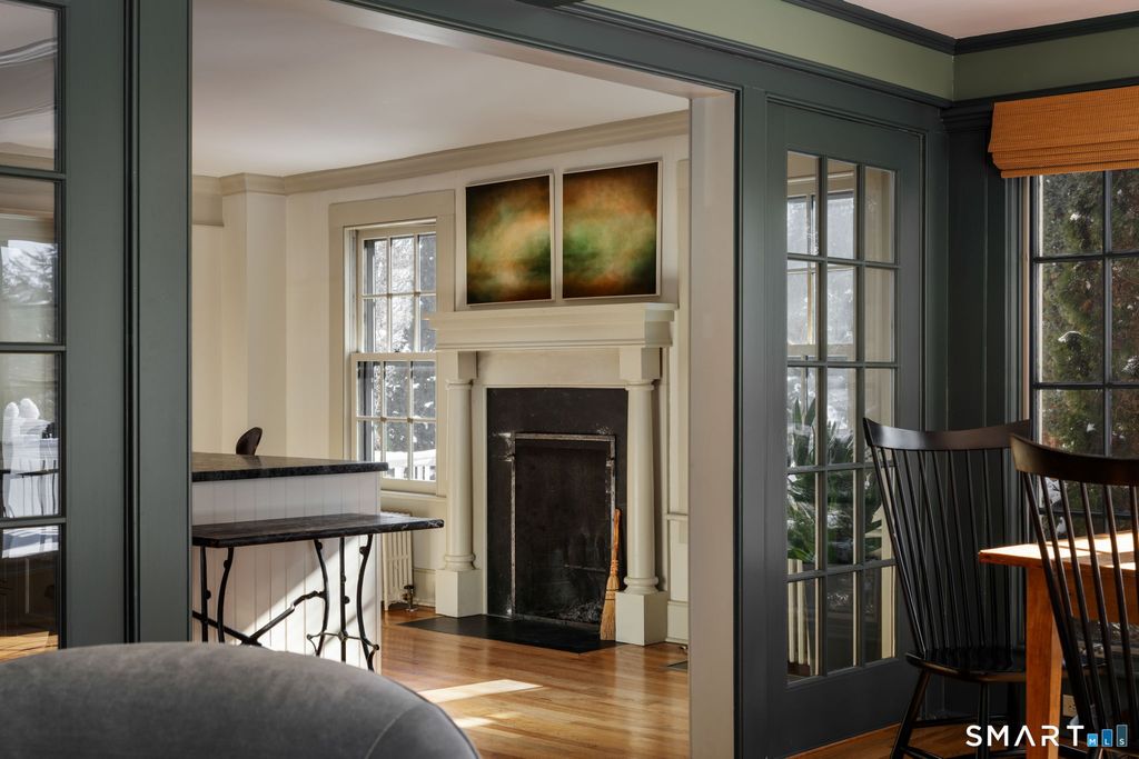 In the heart of Litchfield's coveted Historic District, along one of the town's most admired streets, stands the circa-1855 Woodruff House, an iconic Italianate Victorian Villa and enduring centerpiece of the neighborhood. Built for prominent Litchfield resident George Morris Woodruff, this beloved home blends architectural pedigree with modern livability. Signature elements include a shallow hipped roofline, distinctive columned verandah, double-tiered gallery, and dramatic two-story octagonal bays, a rare and remarkably preserved example of the period. Inside, grand yet inviting spaces unfold: formal entry hall, multiple living rooms for gathering and quiet retreat, dining room, den, office, and a spacious kitchen opening to a comfortable family room. The home offers five bedrooms including two primary suites, along with four full and three half baths, allowing guests and owners alike to live graciously. French doors lead to a sunroom and deck overlooking mature, landscaped grounds designed for entertaining with two patios, an updated heated pool, and the kind of setting that makes weekends linger longer. Modern comforts integrate seamlessly: elevator to primary bedroom, generator, four fireplaces and laundry room. A heated two-story barn provides flexible space for studio, workshop, or collector storage with room for two vehicles. Moments to the Litchfield Green. A rare opportunity to own not simply a home, but a recognized piece of Litchfield's architectural legacy.