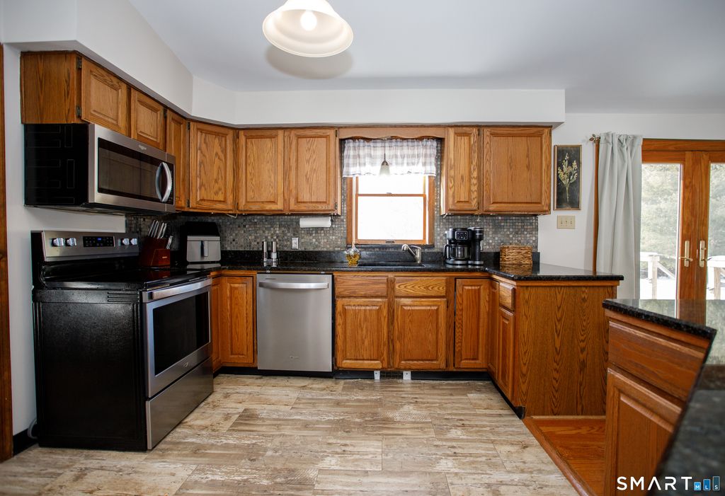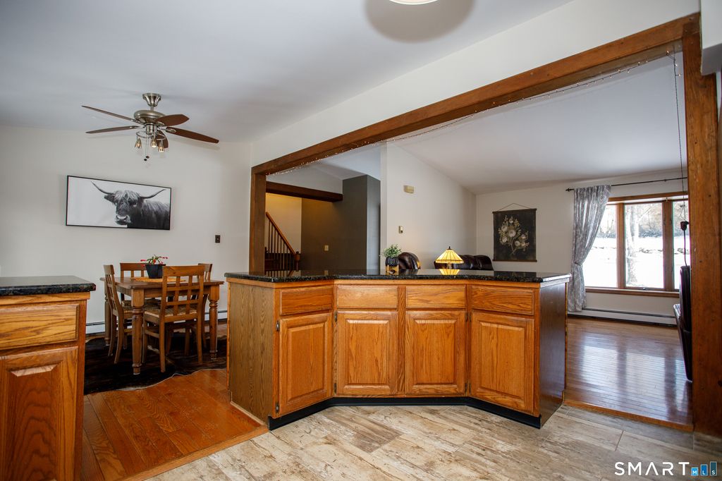 STUNNING SPOTLESS 3 BEDROOM SPLIT LEVEL HOME ON SCENIC ACRE COUNTRY LOT SUROUNDED BY STONEWALLS NEAR MOHEGAN GOLF COURSE. SUN FILLED BRIGHT OPEN FLOWING FLOOR PLAN AS REMODELED GRANITE KITCHEN WITH BREAKFAST BAR AND DINING AREA OPENS TO COZY LIVING ROOM WITH WARM WOOD STOVE FOR THESE COLD WINTER NIGHTS. PRIMARY BEDOOM SUITE WITH FULL BATH AND STALL SHOWER. 2 BEDROOMS AND ANOTHER REMODELED FULL BATH COMPLETES THE UPSTAIRS. WONDERFUL SPRAWLING LOWER LEVEL FAMILY ROOM WITH WALK OUT PERFECT SPACE FOR REC/PLAYROOM, MAN CAVE OR MORE. SPACIOUS BASEMENT STORAGE ALSO. NEWLY PAINTED INTERIOR, NEW TREX DECK OVERLOOKING LEVEL SERENE BACKYARD. SHED WITH WORKBENCH. A HOME THAT FITS YOUR LIFESTYLE AND A PLEASURE TO SHOW!
