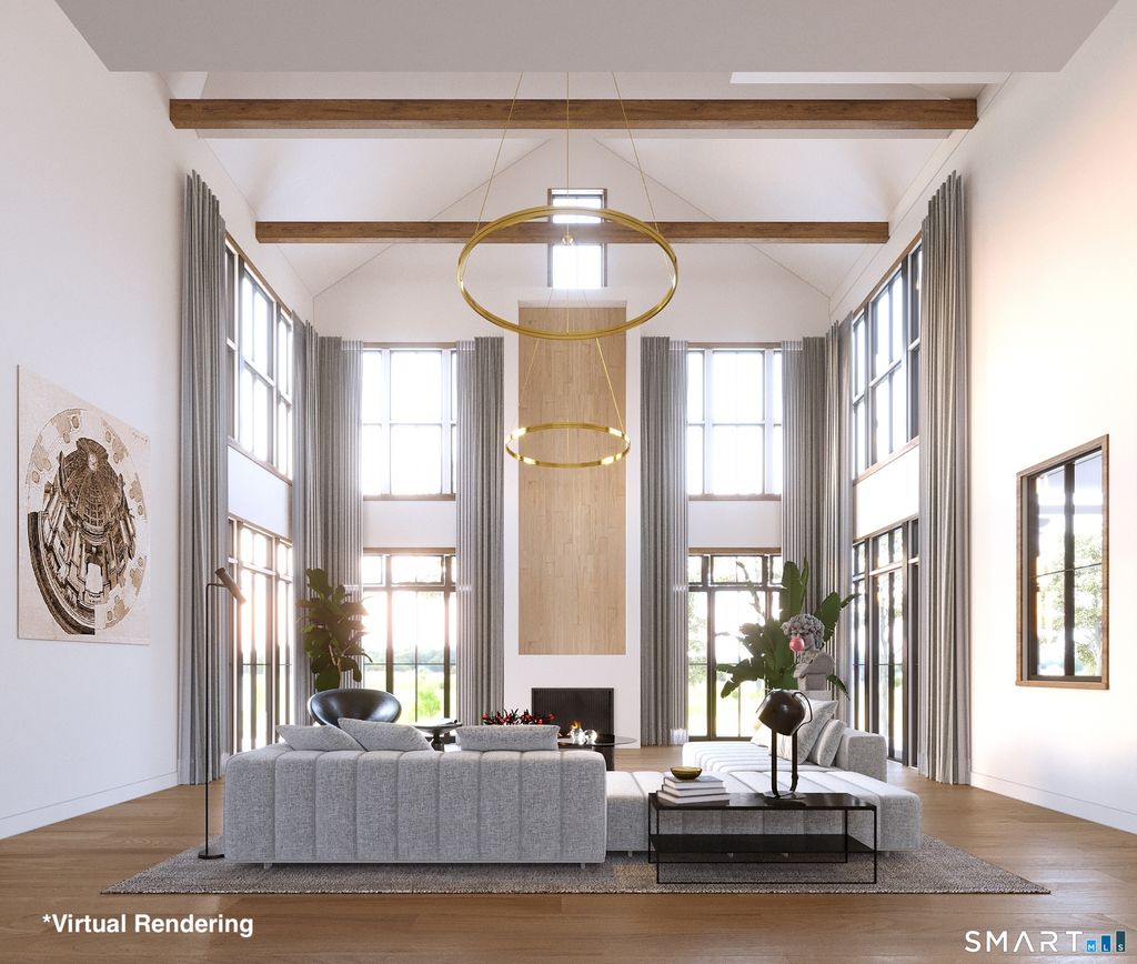Stunning New Construction. A Grand Estate of Architectural Distinction. This Incredible new build was Conceived and Constructed without Compromise. A build of enduring significance beautifully set on 4 acres. Spanning 17,197 square feet, this residence achieves extraordinary vertical volume with 11-foot ceilings on the main level and a breathtaking two-and-a-half-story family room framed by floor-to-ceiling glass. The main level features a Chef's kitchen with an oversized 14-foot island, a glass-enclosed wine room, a stately library and a first floor guest suite. Upstairs, the private primary wing offers a dramatic atrium, vaulted ceilings, and "boutique" level his-and-hers closets. The walk-out lower level with 11 foot ceilings serves as a private resort-level retreat, featuring a glass-enclosed fitness center, a serene octagonal meditation room, and a state-of-the-art golf simulator. Outside, a 3,200-square-foot multi-level masonry terrace leads to a resort-style pool and a fully appointed pool house with a wood-burning fireplace. This estate features a black slate roof, Marvin high-performance windows, and intelligent luxury systems including a Lutron smart lighting system, a 38KW standby generator, and electric vehicle charging. This purpose built masterpiece is designed to stand apart in one of Greenwich's most prestigious settings. Completion expected spring of 2027.