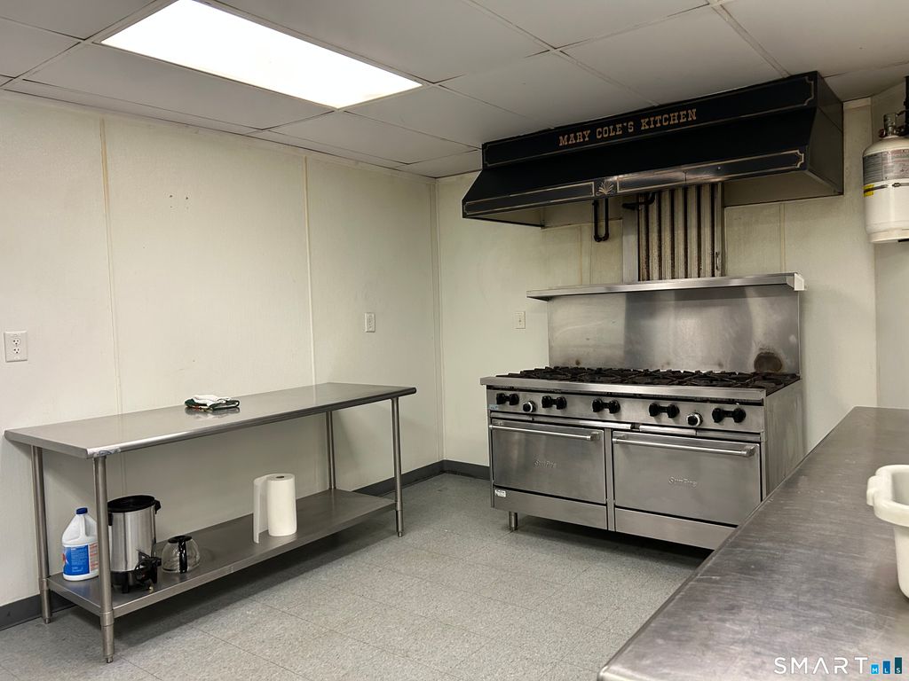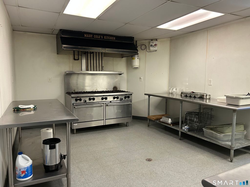 Unique opportunity to lease a fully equipped commercial kitchen located in the lower level of a beautiful stone church in the heart of downtown New Milford. This versatile space is ideal for caterers, food entrepreneurs, bakers, or meal prep businesses seeking an affordable and well-located setup. Lease includes all utilities, offering predictable monthly costs and ease of operation. Tenant also enjoys use of a large adjoining meeting hall-perfect for events, classes, tastings, or community gatherings. Convenient downtown location with easy access to local shops!