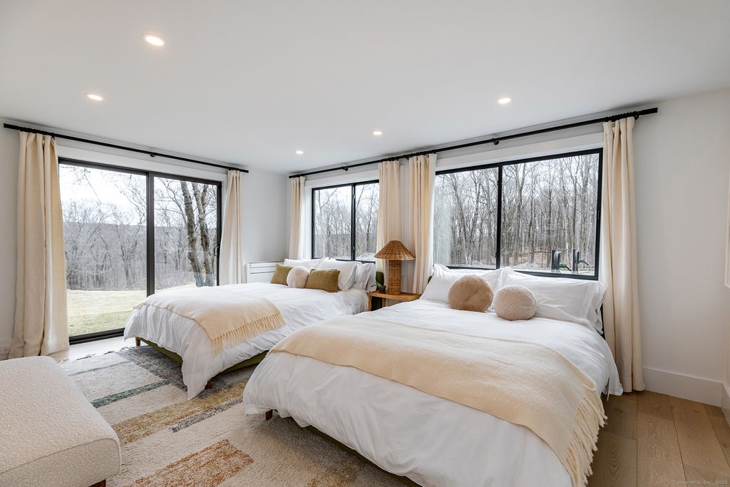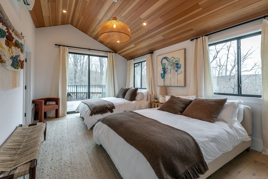 Available @ $35K for August 6-Sept 7, 2026. Also avail $15,000/mo for school year 2026/2027. Gunite Heated Pool being installed in April 2026 and will be ready for August tenant. Enjoy Modern Luxury in Connecticut's Countryside. The meticulously renovated 4-bedroom residence seamlessly blends the original mid-century architecture with contemporary sophistication. Enter on the main level with 2 bedrooms and 2 full baths, sauna, foyer, powder room and huge media room with large screen tv and bar. Upstairs you're greeted by soaring ceilings and quality finishes that further establish the home's distinctive character. The great room features a fireplace, tv, dining for 8-10, gourmet kitchen and windows that frame pastoral views of the Litchfield Hills. The Great Room walks out to a covered porch with lounging, dining table and bbq. The primary bedroom with its luxurious 4 piece bath and an additional bedroom/bath complete this level. Brand new designer furnishings create sophisticated living spaces throughout. There are also 2 electric car chargers and a brand new 2 car garage. 10-12 minutes to the charming village centers of Washington and Woodbury which offer fine dining, organic markets, chic shoppes, farmer's markets and many cultural attractions. This extraordinary rental represents Connecticut country living at its most refined.