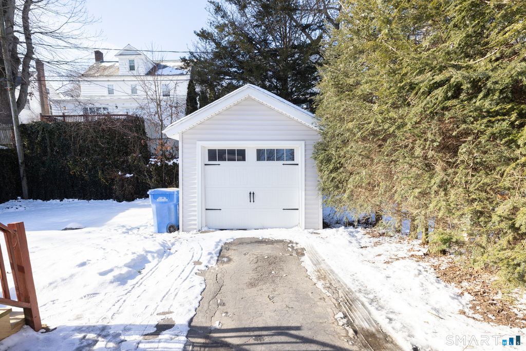 Charming colonial home offering classic New England character and modern convenience! This well-maintained two-story residence features spacious rooms throughout, highlighted by beautiful hardwood floors, decorative crown molding, and abundant natural light. The main level welcomes you with a gracious living room complete with fireplace and built-in shelving, flowing into additional living spaces perfect for entertaining. The kitchen boasts rustic wood paneling, gas range, and convenient rear access. Multiple well-proportioned bedrooms offer comfortable accommodations, complemented by updated bathroom facilities. Unique features include an enclosed porch with a distinctive stone accent wall, exposed beam ceilings in select rooms, and generous closet space throughout. The full basement provides excellent storage and potential for additional living space. Outside, enjoy a private fenced backyard with a deck for outdoor relaxation and entertaining, plus a detached one-car garage for parking and storage. Located on a quiet residential street with easy access to local amenities, shopping, and major routes. This home offers tremendous value and potential - perfect for owner-occupants or investors. Don't miss this opportunity to own a piece of classic Waterbury charm!