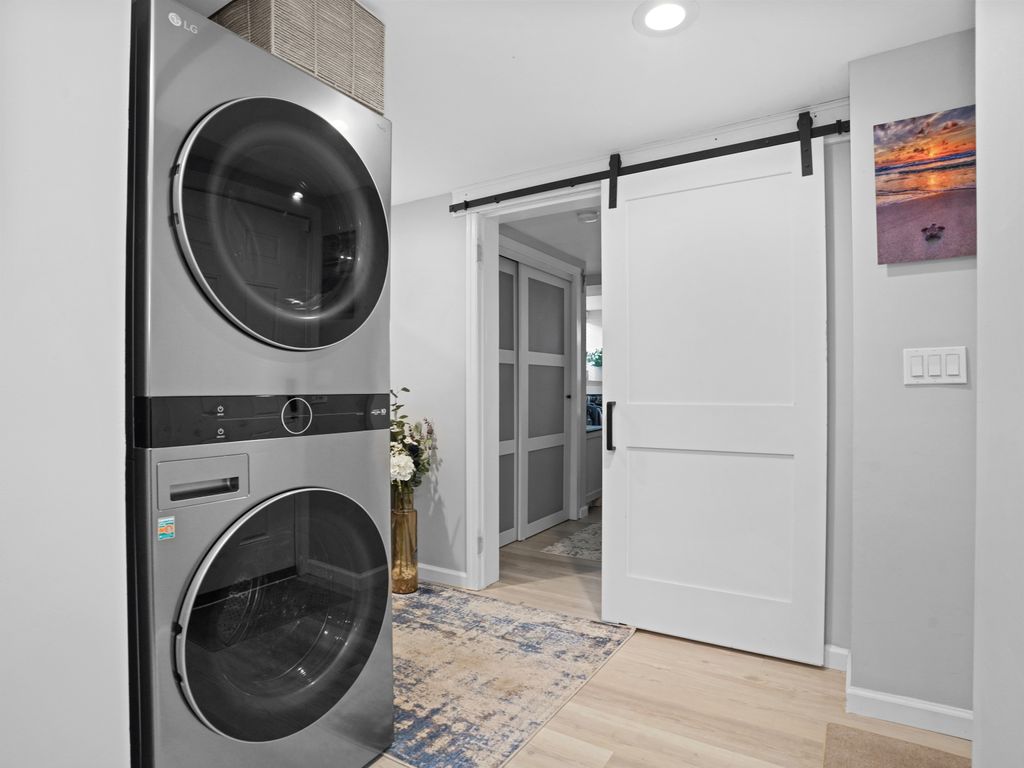 Prime Downtown Stamford! Smashing, completely renovated one-bedroom offers modern turnkey living! Chef's kitchen featuring quartz counters, stainless appliances, and a built-in beverage center. The bonus room, currently used as an office, adds valuable flexibility for work-from-home or additional storage. One assigned parking space plus plenty of visitor parking. Recent improvements include fresh paint throughout, a new stylish barn door, new in-unit washer and dryer, and a newer hot water heater. Complex recently replaced roof, & painted exterior. Nothing to do but move right in - ideal for a homeowner or an investor. All just minutes from vibrant Downtown Stamford with endless shopping, dining, and easy commuting access to Metro-North and I-95. A prime walkable location with low-maintenance living - a rare find at this price point.