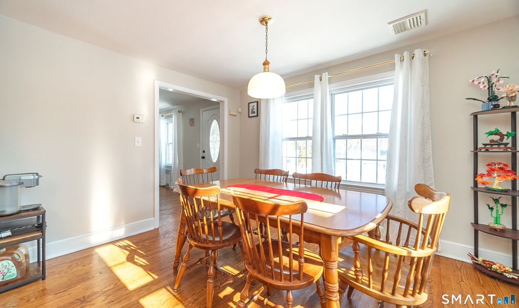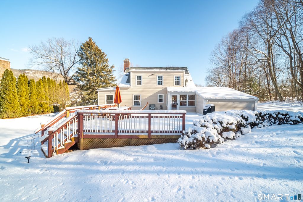 Fantastic cape in a wonderful Southington location! This is such a beautiful floor plan. Beautiful front to back living room with hardwood floors throughout the entire house! Fireplace and beautiful bay windows... HUGE kitchen with granite countertops and stainless steel appliances. So many cabinets, under cabinetry lighting and a large pantry. 3 season porch can be used as an office, sunroom or many other ideas... mudroom off the back of the house with vaulted wood ceiling... connects to the extra large deck and garage. Newer windows and roof. Updated and beautifully cared for...don't miss this. This one is a gem!!!