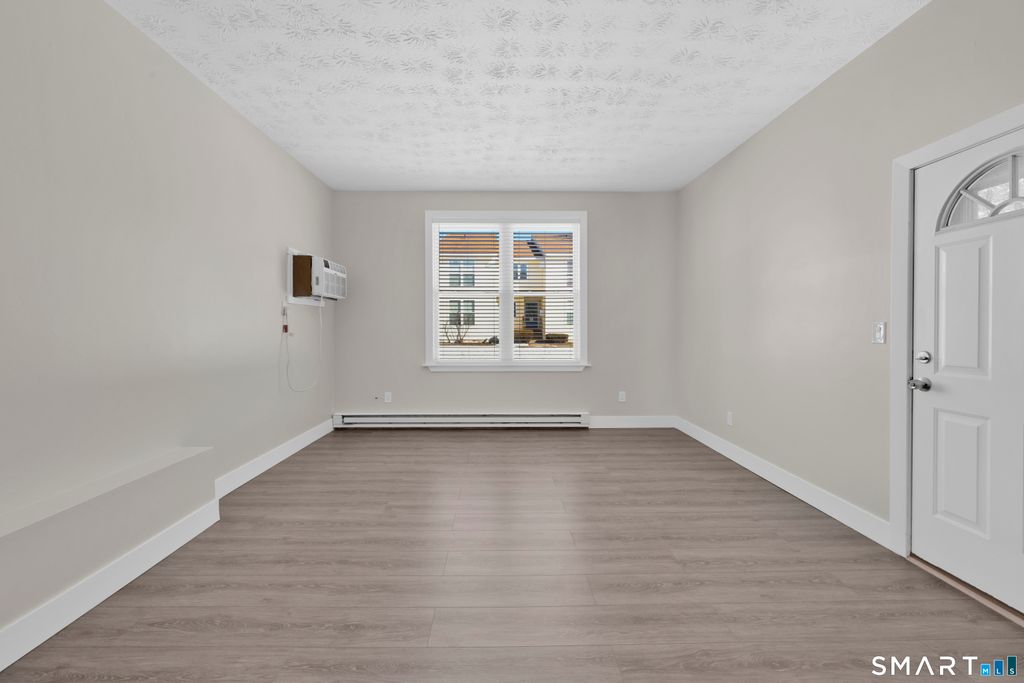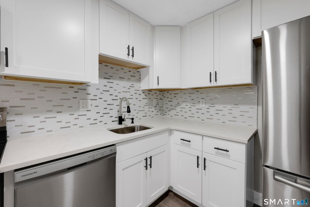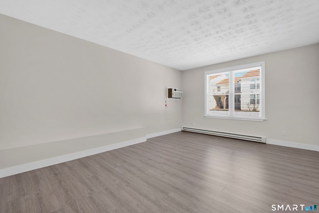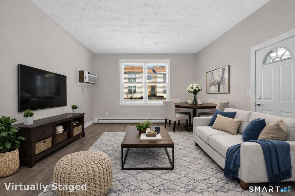 Thoughtfully designed living space in this one-bedroom, one-bathroom condominium in sought after South Windsor. Covered entryway at front and back of building leads to first floor hallway with entry to spacious and bright unit. Great Room has abundant natural light from large windows and a very high ceiling. The floor plan creates plenty of separate living space and a private bedroom. ALL SPACE IS COMPLETELY REMODELED! New kitchen with modern appliances including dishwasher, new bathroom with updated features, new flooring and high ceilings enhance the feeling of spaciousness. The primary bedroom is a spacious layout with large windows and 2 double closets. Generous sized bathroom features a vanity area with ample space for personal items and grooming. The kitchen is well-appointed, showcasing modern appliances, pantry closet, cabinetry, and generous quartz countertop space to accommodate various culinary needs. Plenty of room to add a kitchen island! Located at the back of the complex buildings as an end unit, amenities include a spacious private outdoor area and covered porch. Property includes a pool, playground, ample parking and conveniently located laundry room across the hall. Overall, this condo offers a comfortable and functional living space with a thoughtful design for a 1 bedroom unit! Convenient to all South Windsor amenities and highways! Restaurants, public parks, retail, Costco, Whole Foods, Shoppes at Evergreen Walk and award winning schools are all nearbyl
