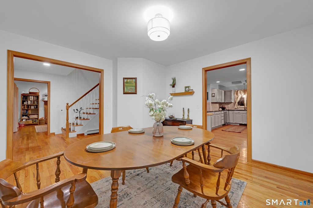 Charming 3-bedroom, 2.5-bath colonial filled with country character and modern updates, set on a quiet, private road. Gleaming hardwood floors (brand new in all the bedrooms) on the main and upper levels, fresh paint, pellet stove, and an updated kitchen create a warm, inviting interior. Exceptional in-law potential with approx. 580 sq ft in the walk out basement offering an additional bedroom, living room, kitchenette, bathroom, and abundant storage. Enjoy sunsets from the double composite back decks or relax on the classic front farmer's porch. Located in a desirable area with highly ranked schools and access to Woodstock Academy. A rare blend of charm, flexibility, and lifestyle.