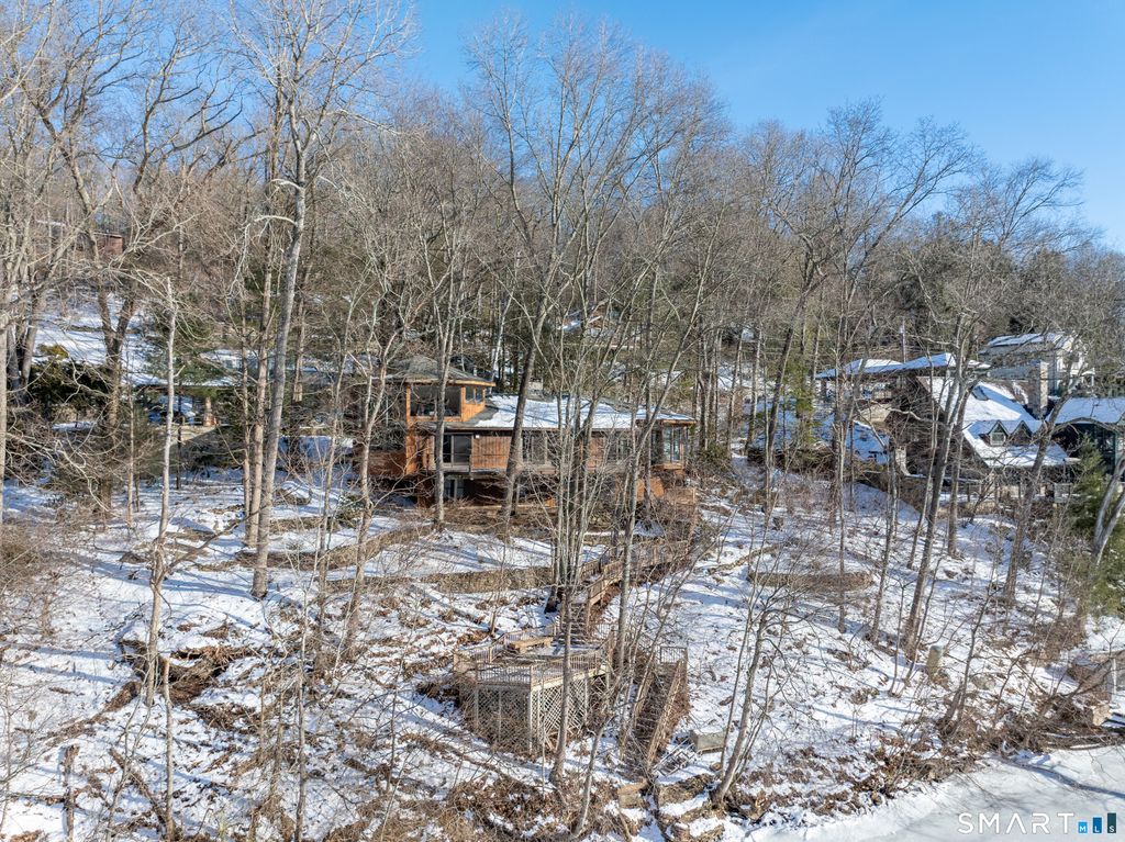 Nestled along the shores of Candlewood Lake, this masterpiece of mid-century modern design, blends timeless elegance with waterfront living. The home is a sanctuary of light and space, featuring clean lines, expansive windows, and an open floor plan that invites the outdoors in. Step inside to discover a sunlit open floor plan with warm wood finishes, and panoramic western views of the lake. Beyond, the expansive three season great room blends the inside with the outside, and has direct access to a private front deck. The kitchen is tucked back and, flows seamlessly into the dining area, making it perfect for everything from quiet breakfasts to lively dinner parties. The primary suite, encompassing the second, floor offers a tranquil retreat with the feel of a private tower overlooking the water. The lower level boast a third bedroom, full bath and lakeside access. Outside, your private oasis awaits. Lounge on the spacious deck, or take the steps down to your own dock and enjoy boating, kayaking, or simply soaking in the lake's beauty. The naturally landscaped grounds enhance the home's architectural charm, creating an idyllic setting for relaxation or entertaining. Located in the coveted Ferris Estates community, this property combines privacy with convenience, offering easy access to New Milford's charming downtown, and easy commute to NYC. Whether you're seeking a weekend getaway or a year-round residence, this home captures the essence of lake living.